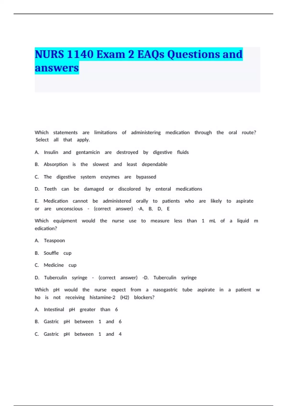 E. //.Blood //.glucose //.testing //.materials //.- //.(correct //.answer) //.-B, //.C, //.D
