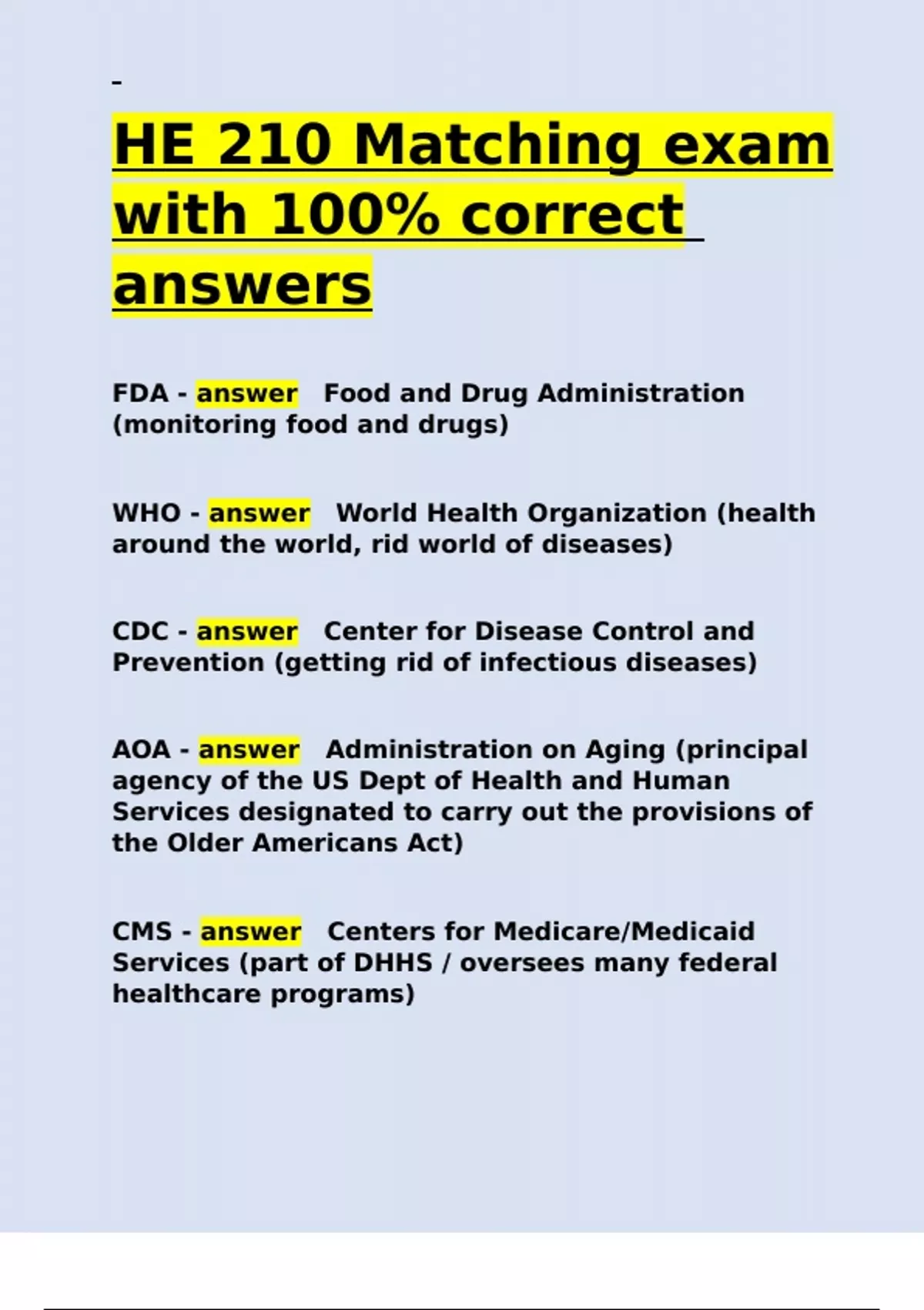 WHO - answer World Health Organization (health