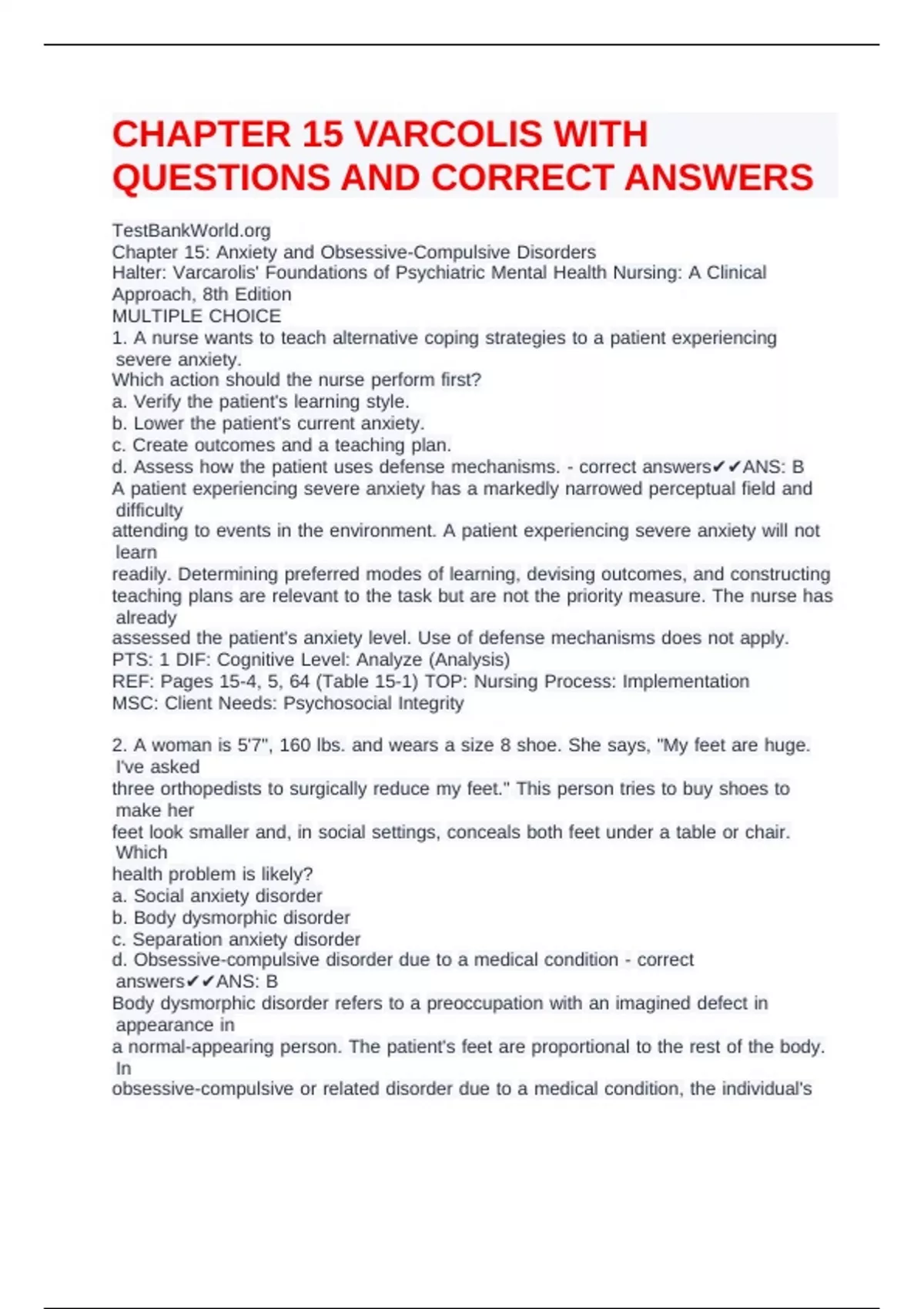 d. sAssess show sthe spatient suses sdefense smechanisms. s- scorrect sanswers✔✔ANS: sB