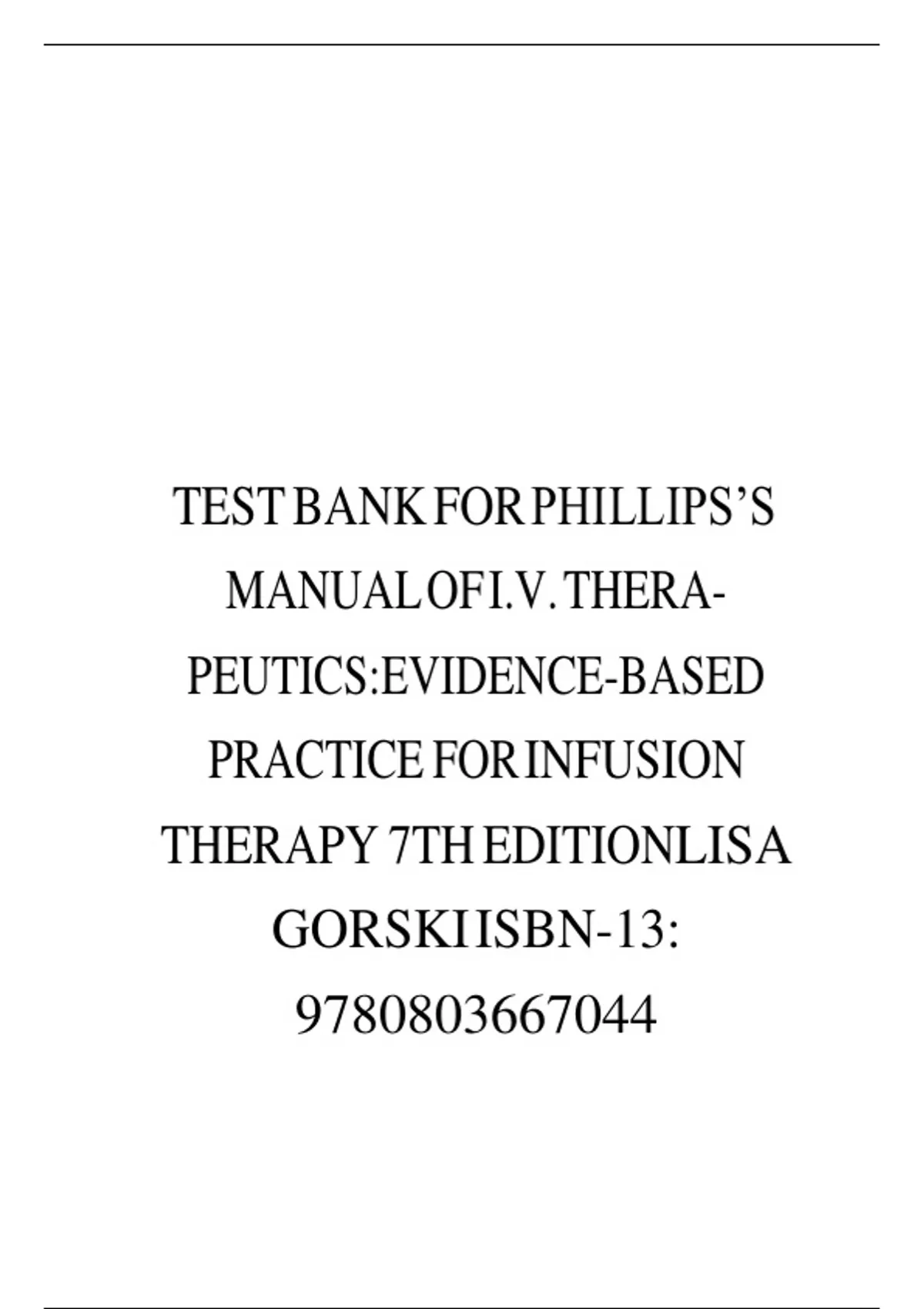 ,Test Bank for Phillips’s Manual of I.V. Therapeutics: Evidence-Based Practice for Infusion Therapy,