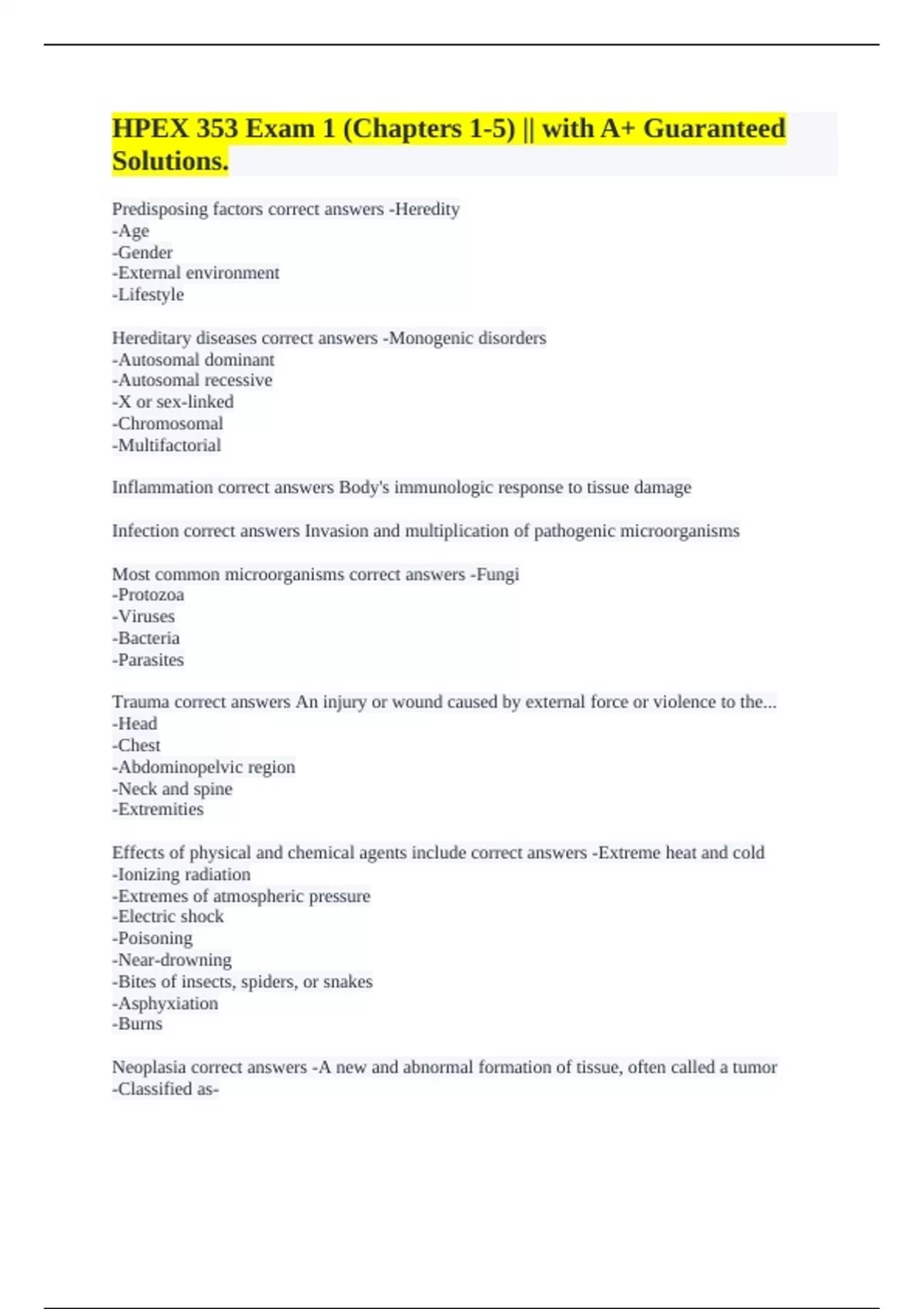 Trauma correct answers An injury or wound caused by external force or violence to the...