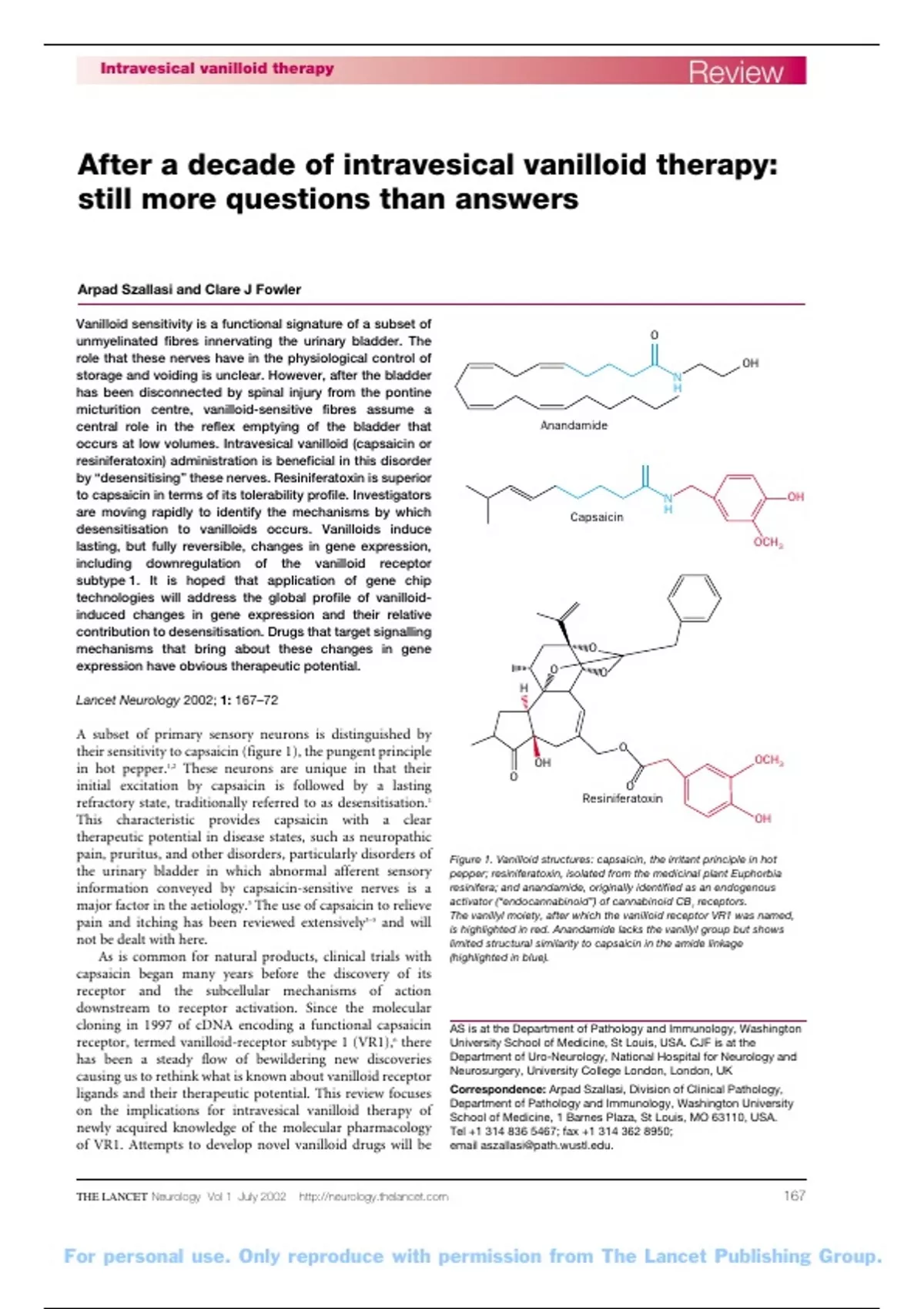 receptor, termed vanilloid-receptor subtype 1 (VR1),6 there University School of Medicine, St Louis, USA. CJF is at the
