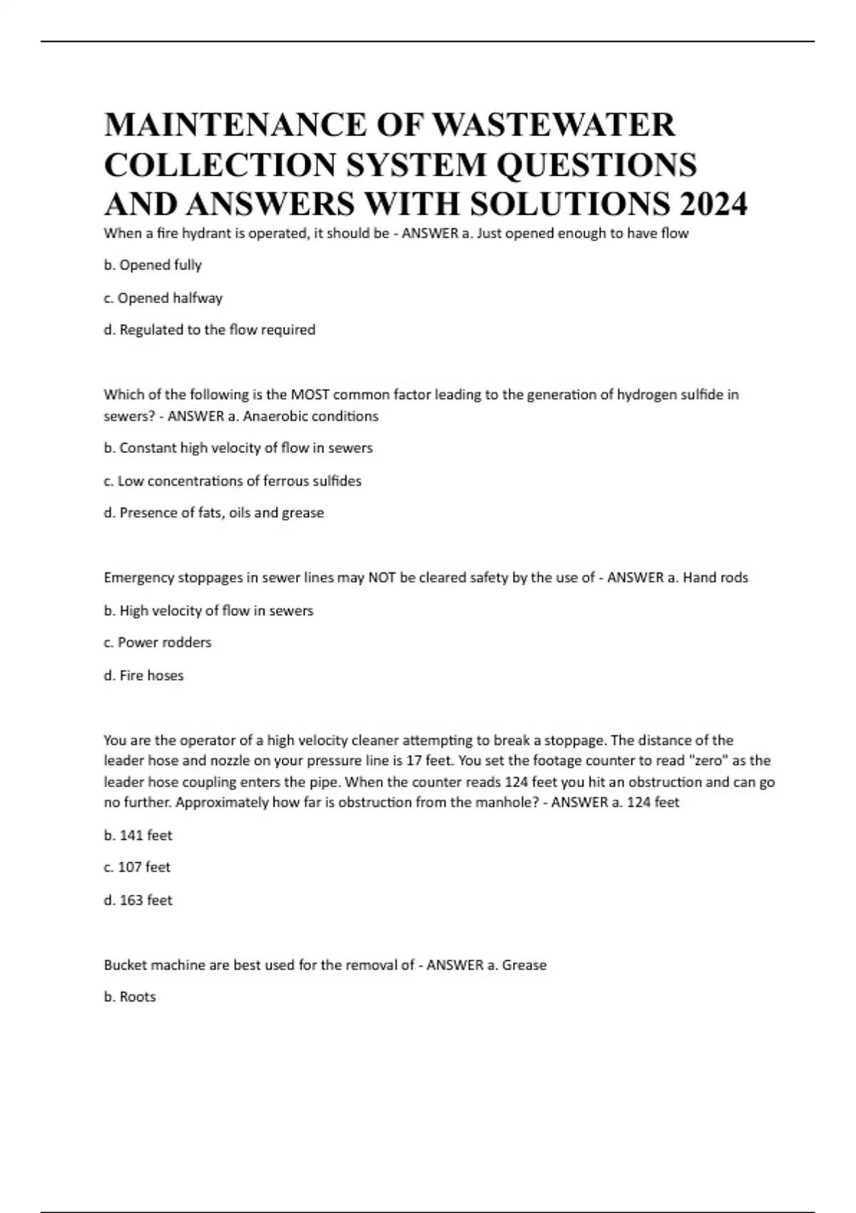 sewers? - ANSWER a. Anaerobic conditions