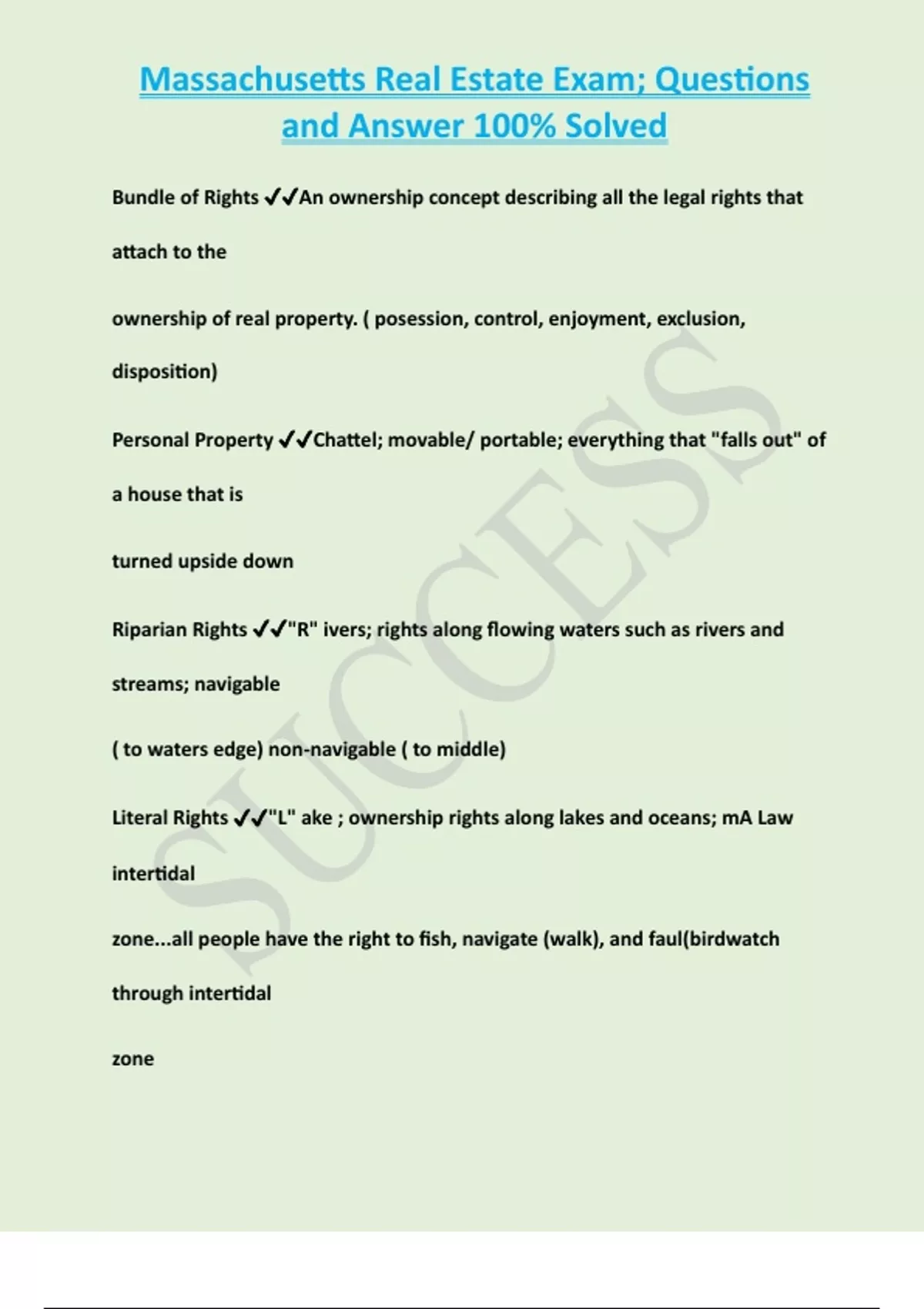 Literal Rights ✔✔"L" ake ; ownership rights along lakes and oceans; mA Law