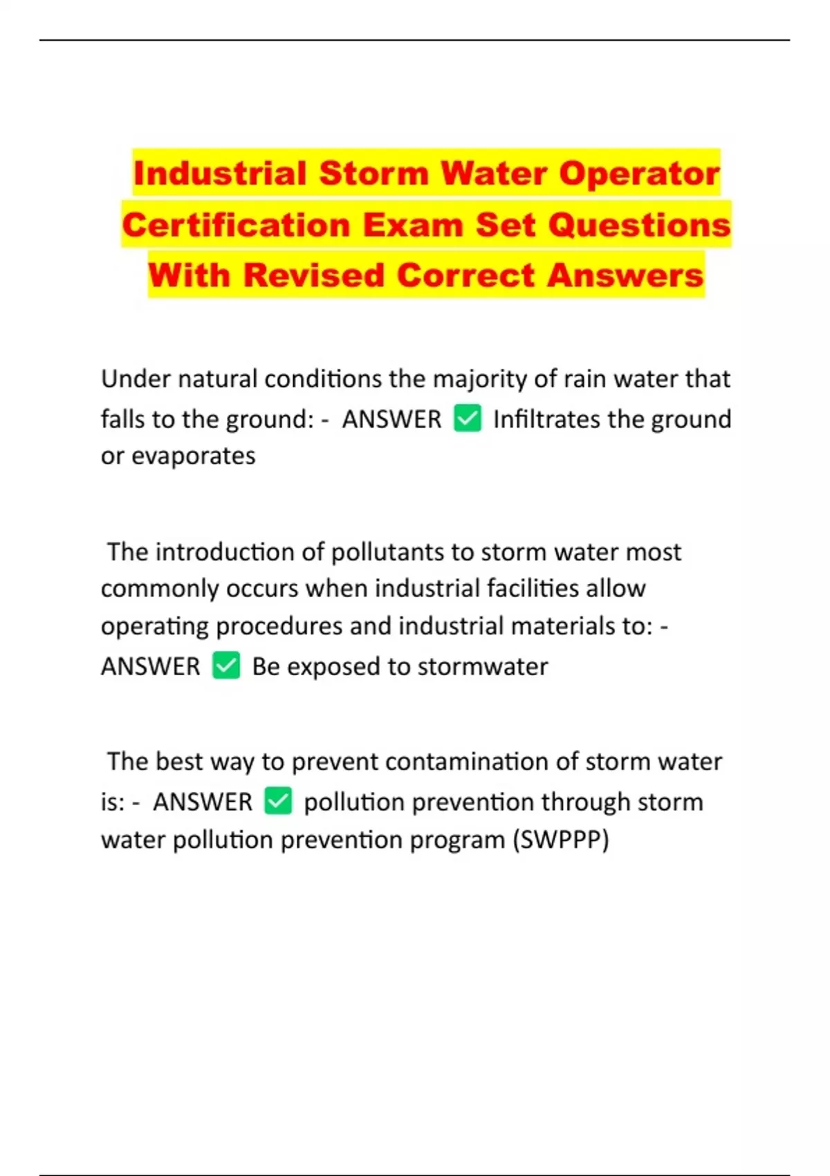 is: - ANSWER pollution prevention through storm