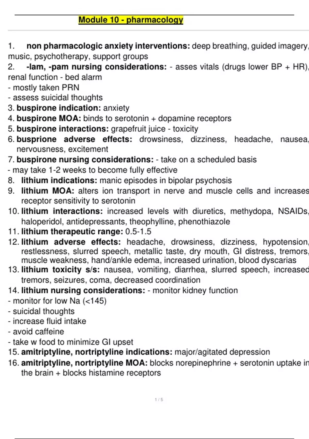4. buspirone MOA: binds to serotonin + dopamine receptors