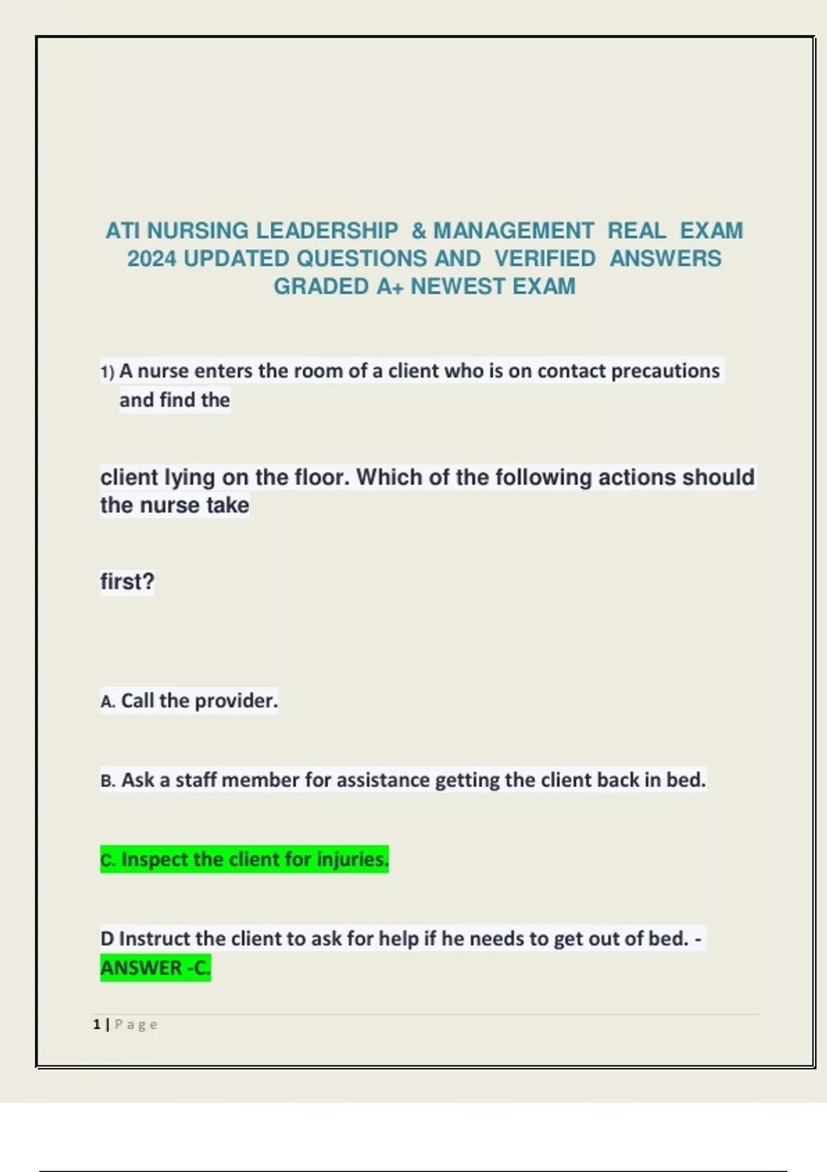 ATI NURSING LEADERSHIP & MANAGEMENT REAL EXAM