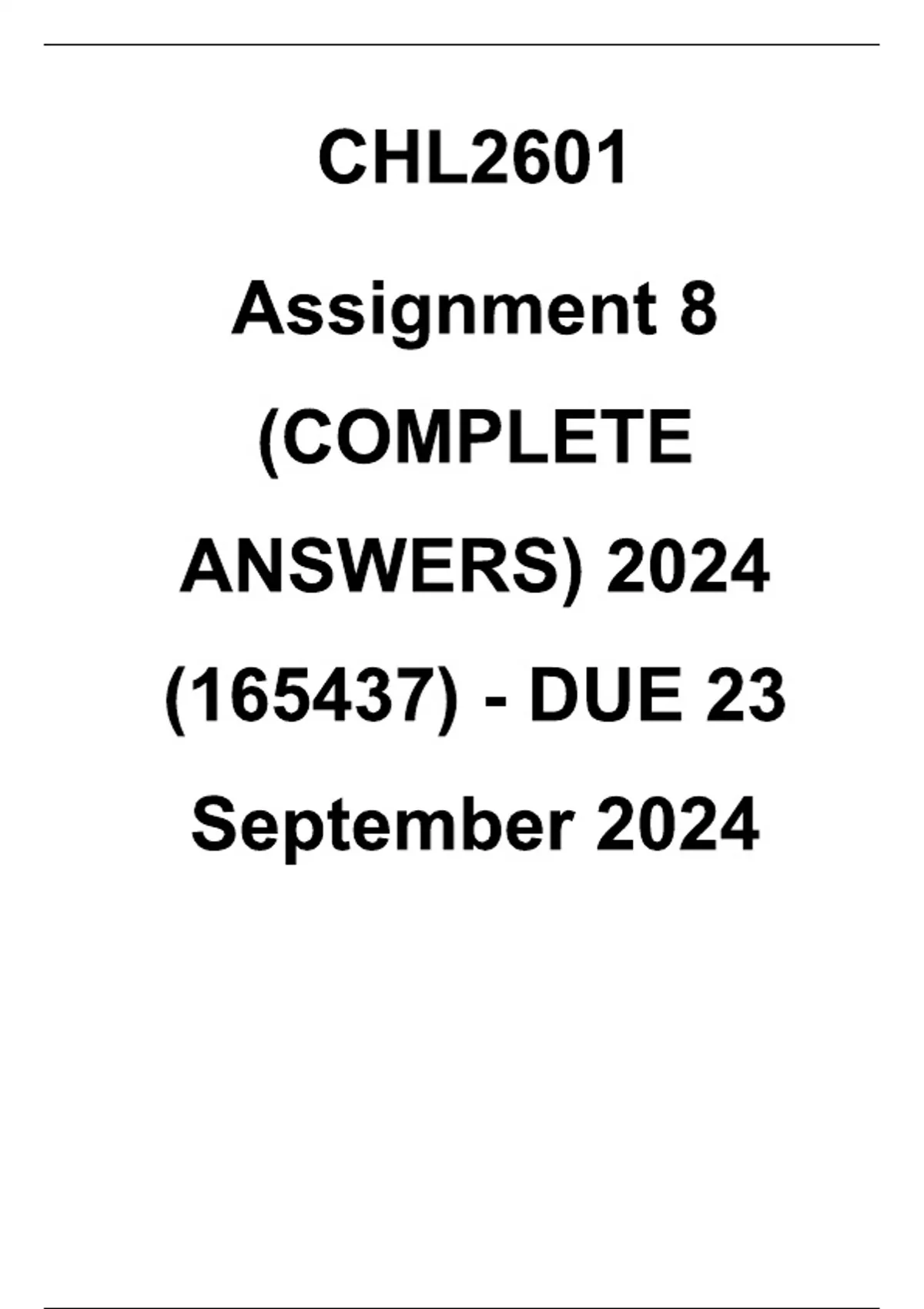 CHL2601 Assignment 8 (COMPLETE ANSWERS) 2024 (165437) - DUE 23 September 2024.