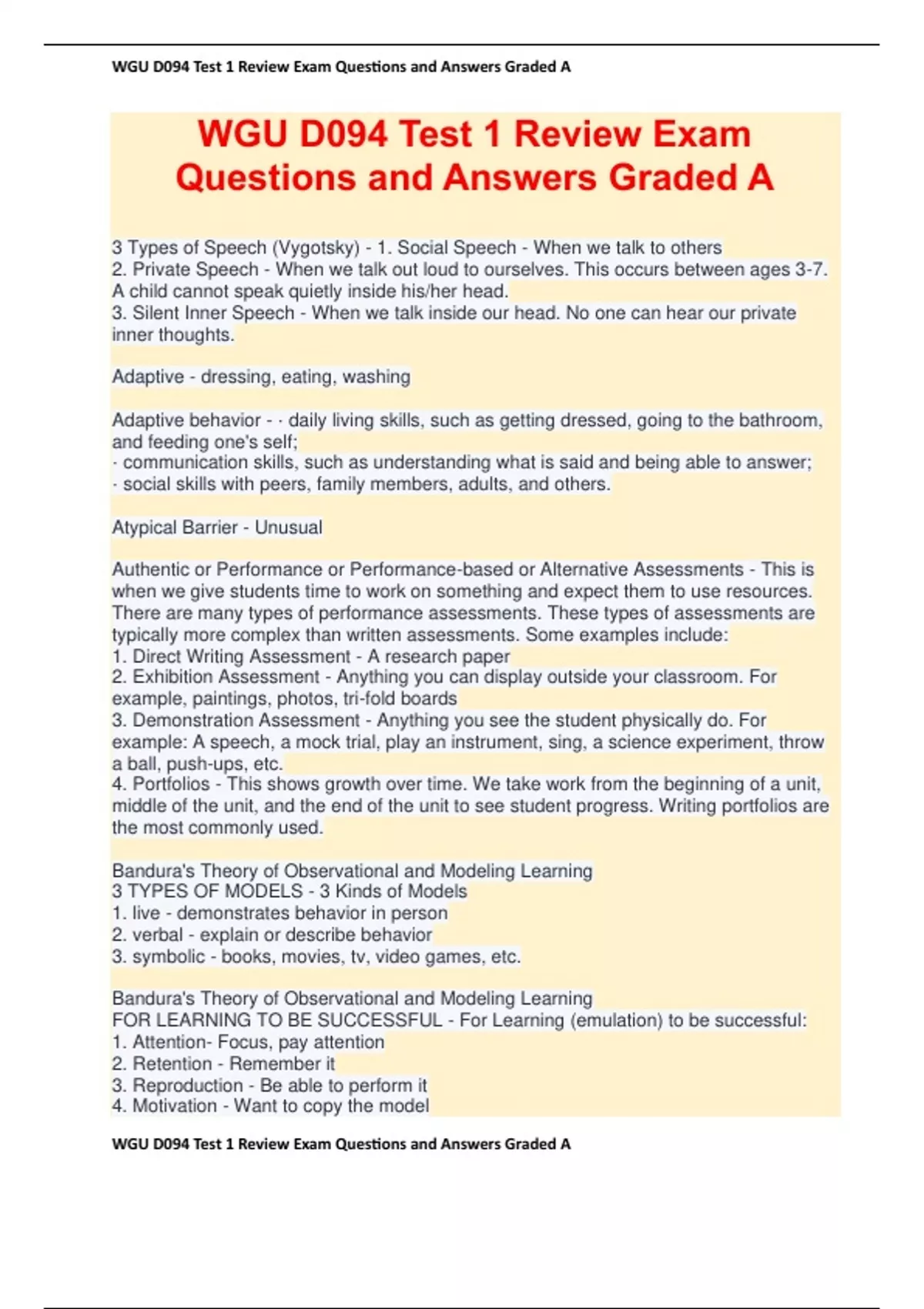 , WGU D094 Test 1 Review Exam Questions and Answers Graded A