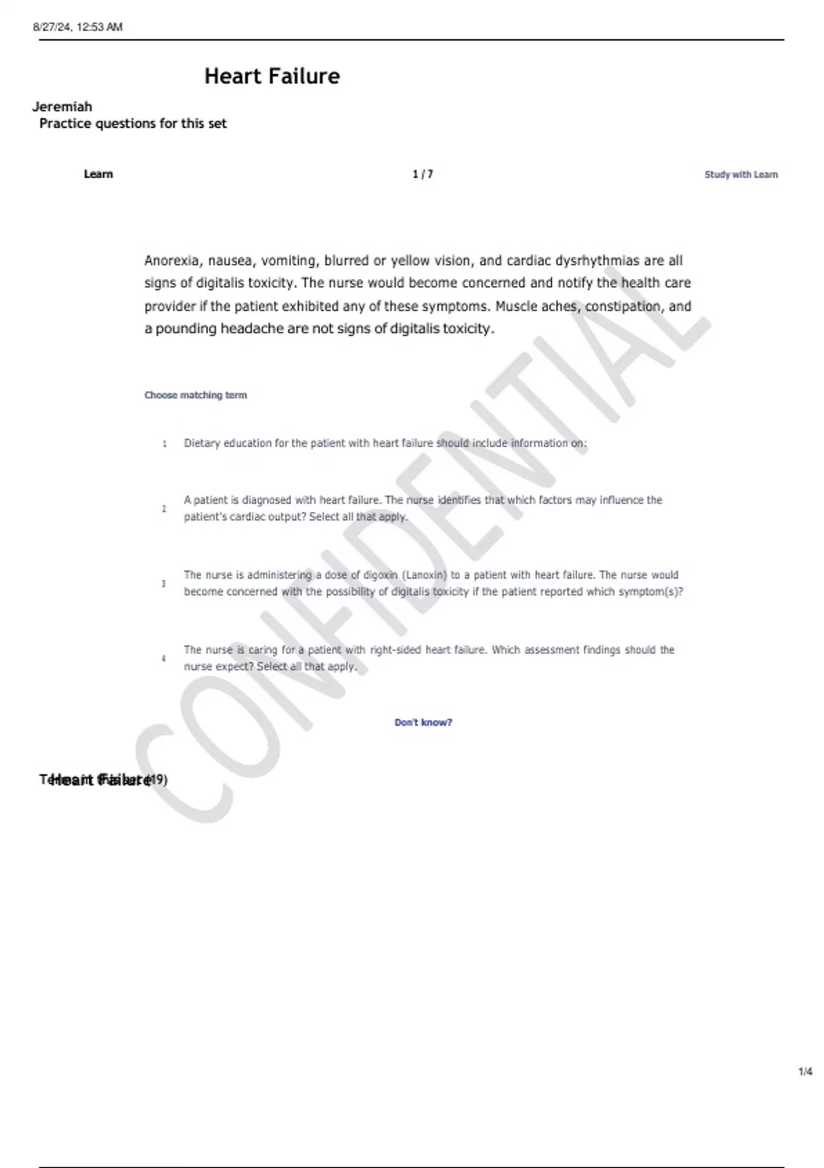 signs of digitalis toxicity. The nurse would become concerned and notify the health care