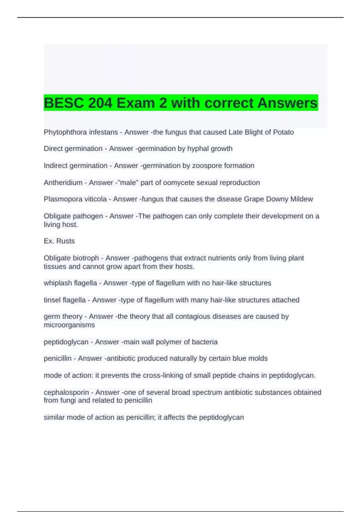 BESC 204 Exam 2 with correct Answers