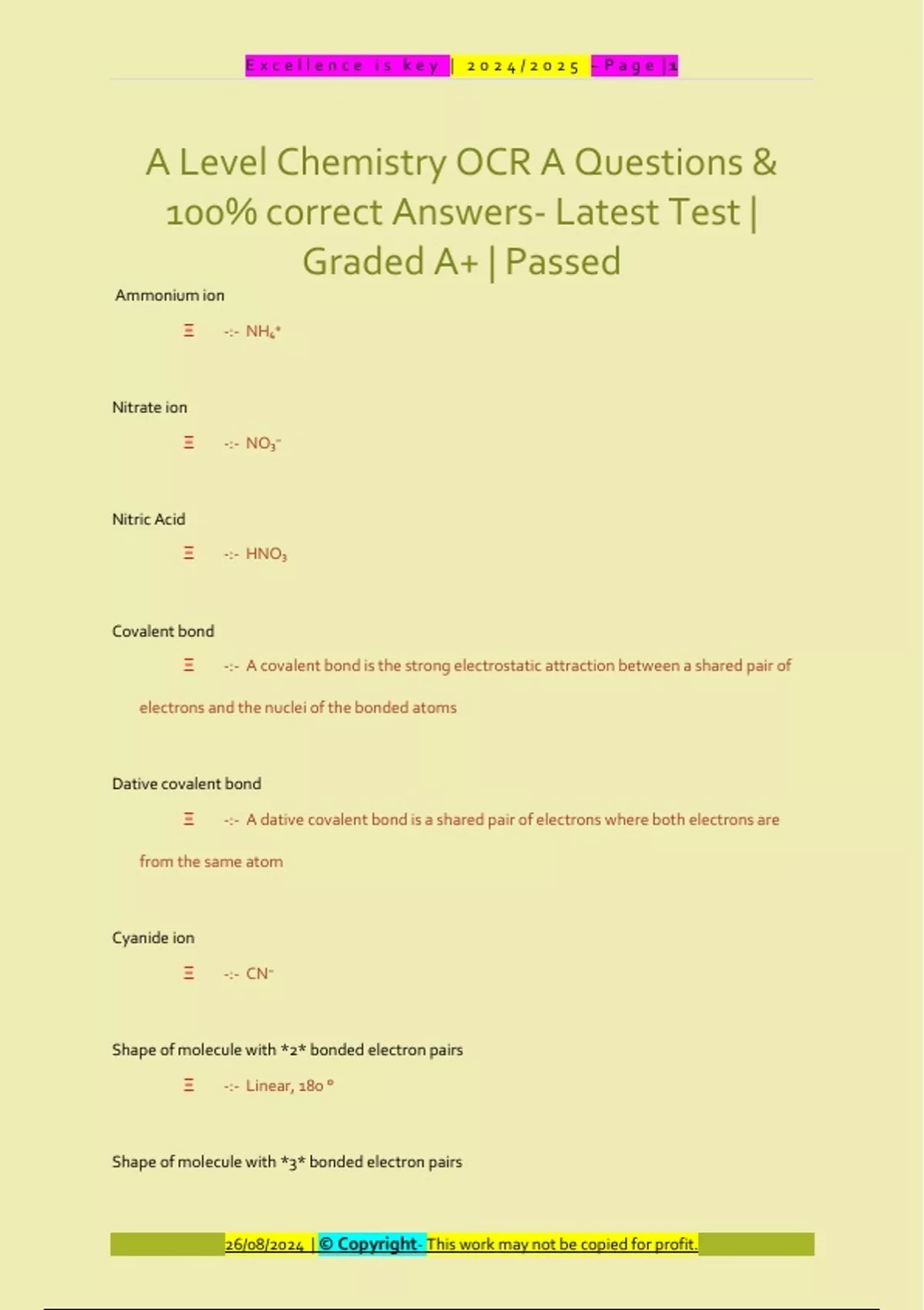 26/08/2024 | © Copyright- This work may not be copied for profit.