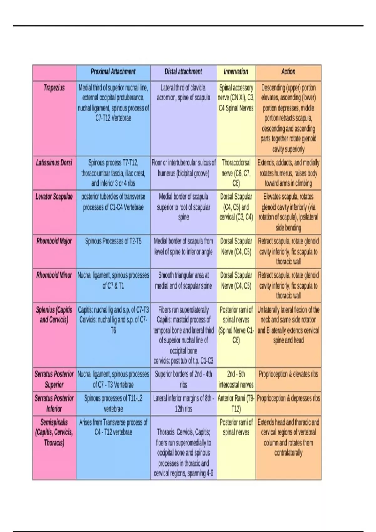 Serratus Posterior Nuchal ligament, spinous processes Superior borders of 2nd - 4th 2nd - 5th Proprioception & elevates ribs