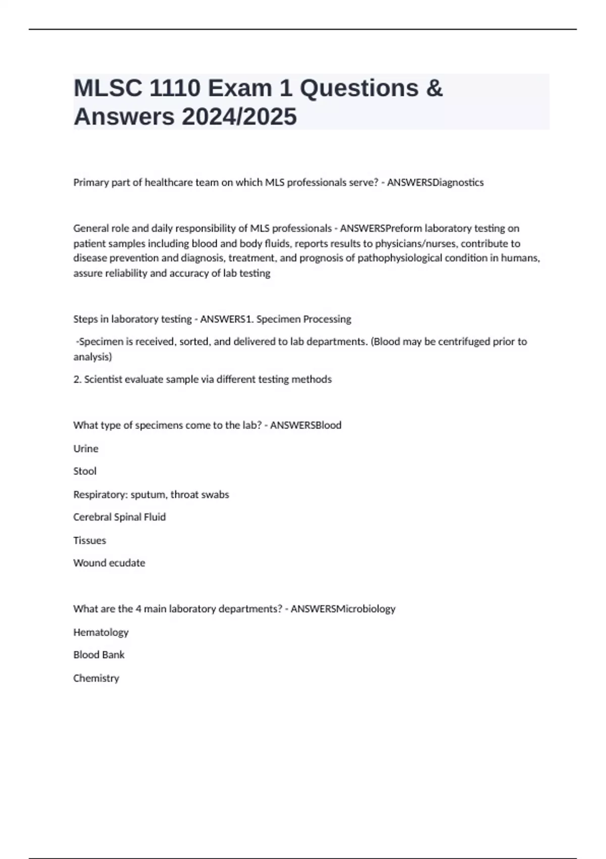 General role and daily responsibility of MLS professionals - ANSWERSPreform laboratory testing on