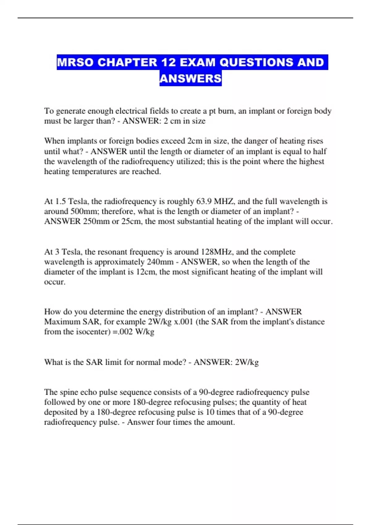 MRSO CHAPTER 12 EXAM QUESTIONS AND