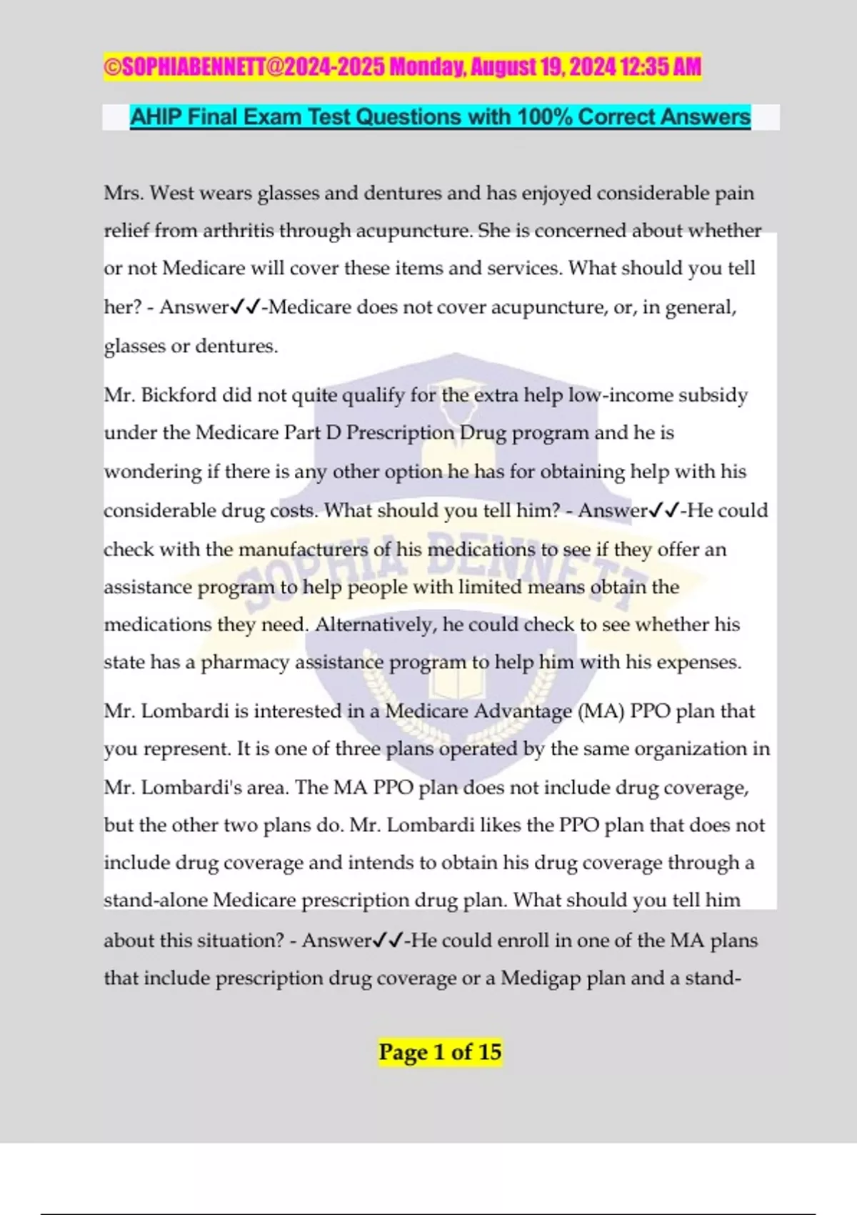 AHIP Final Exam Test Questions with 100% Correct Answers