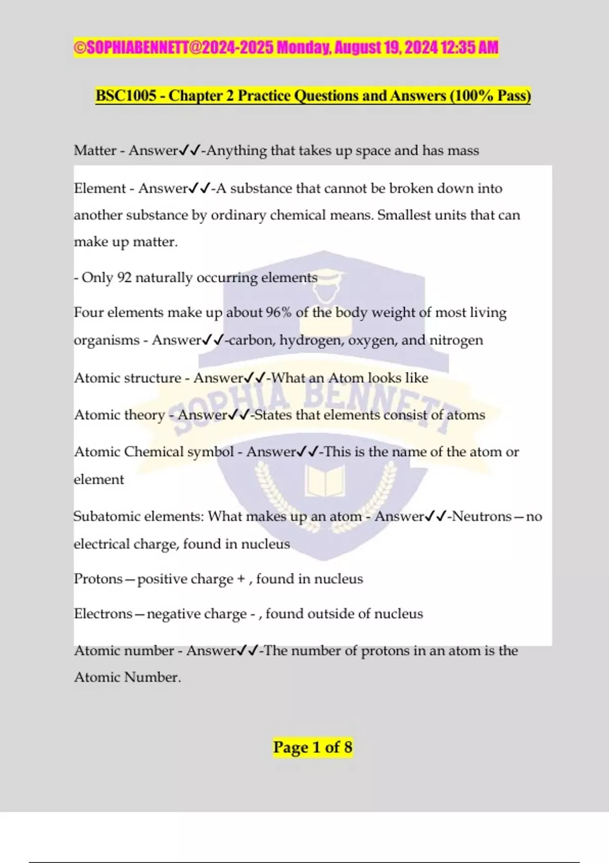 BSC1005 - Chapter 2 Practice Questions and Answers (100% Pass)
