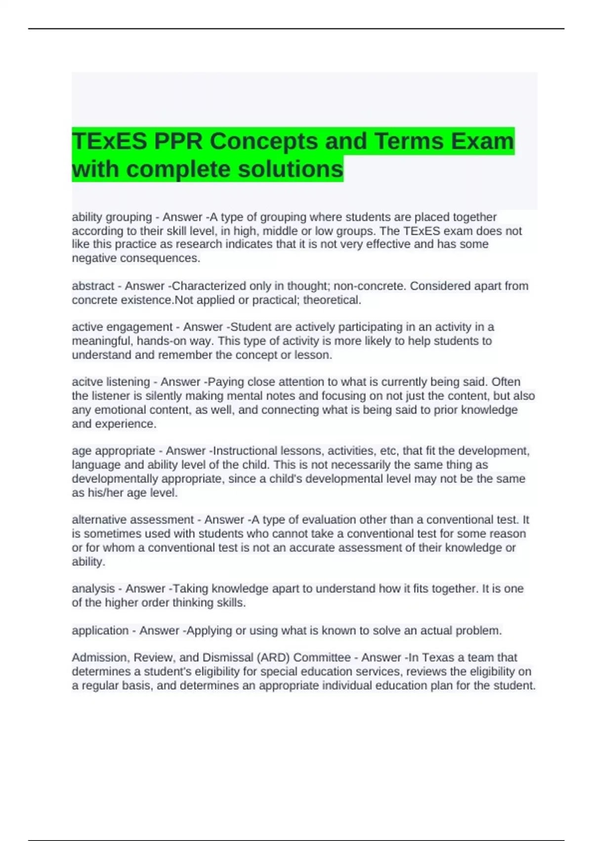 TExES PPR Concepts and Terms Exam