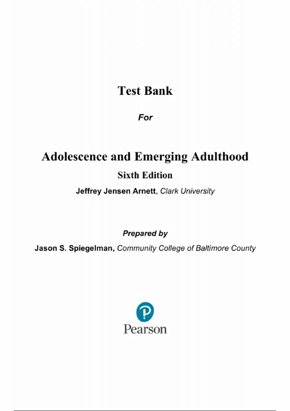 TEST BANK for Adolescence and Emerging Adulthood 6th Edition, A Cultural Approach by Jeffrey Jensen Arnett; Jeffrey Jensen Arnett