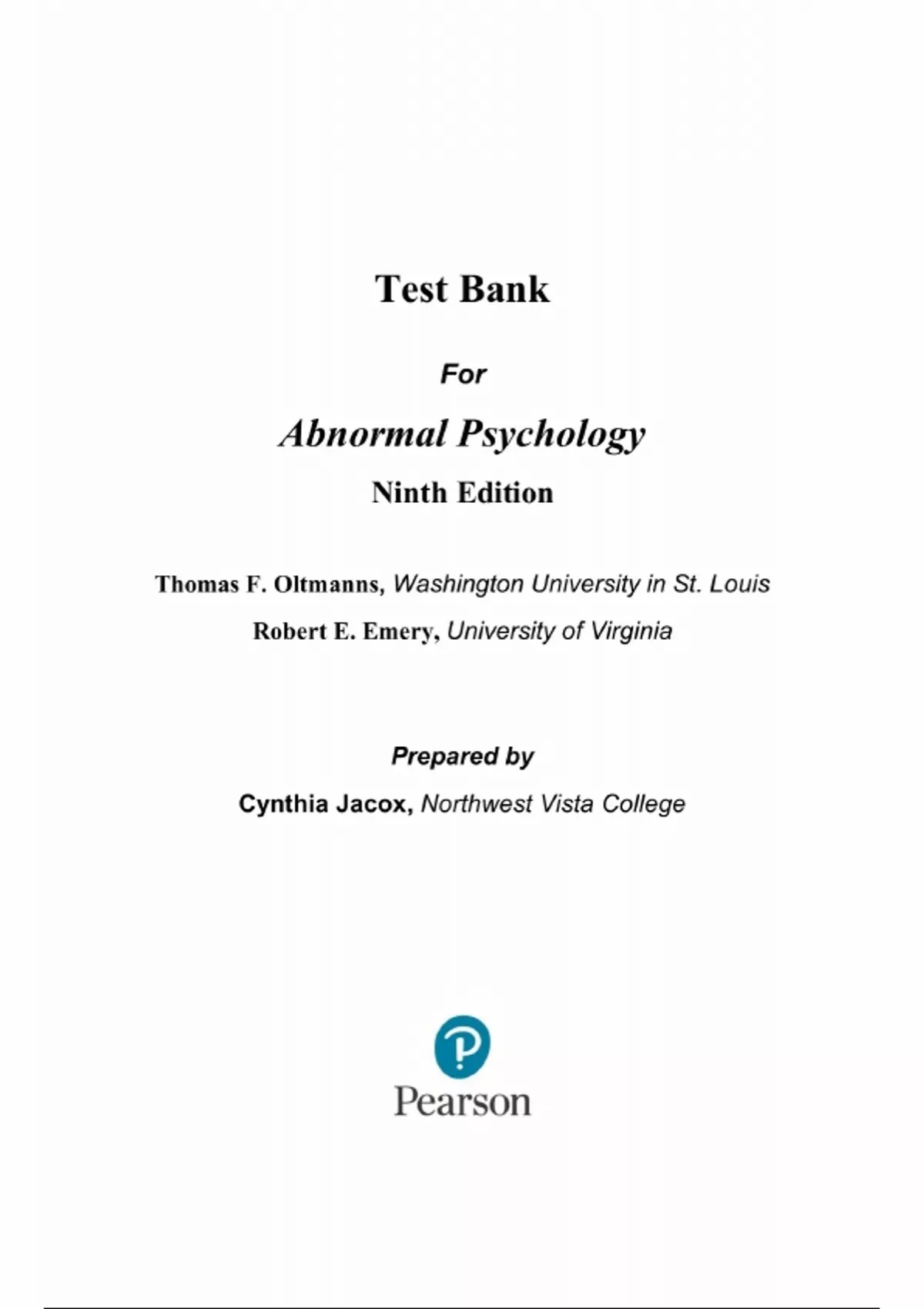 Test Bank - Abnormal Psychology 9th Edition by Thomas Oltmanns, 2018
