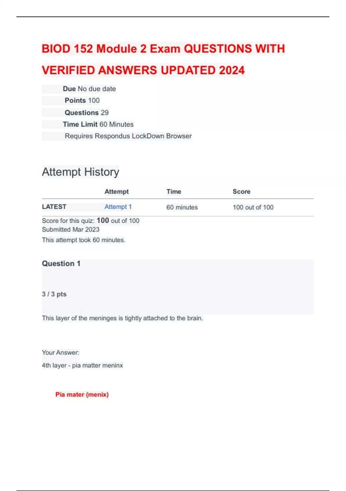 LATEST Attempt 1 60 minutes 100 out of 100