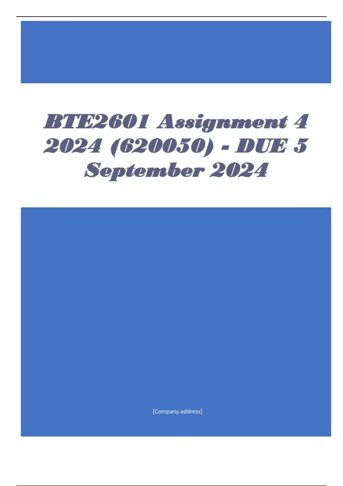 , BTE2601 Assignment 4 2024 (620050) - DUE 5 September 2024