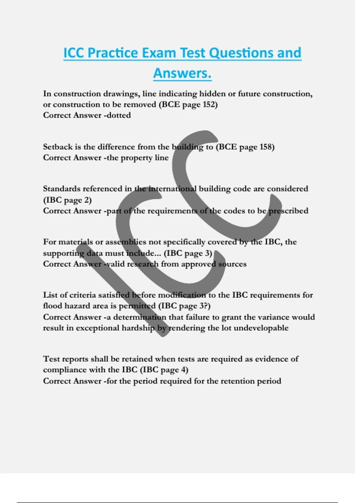compliance with the IBC (IBC page 4)