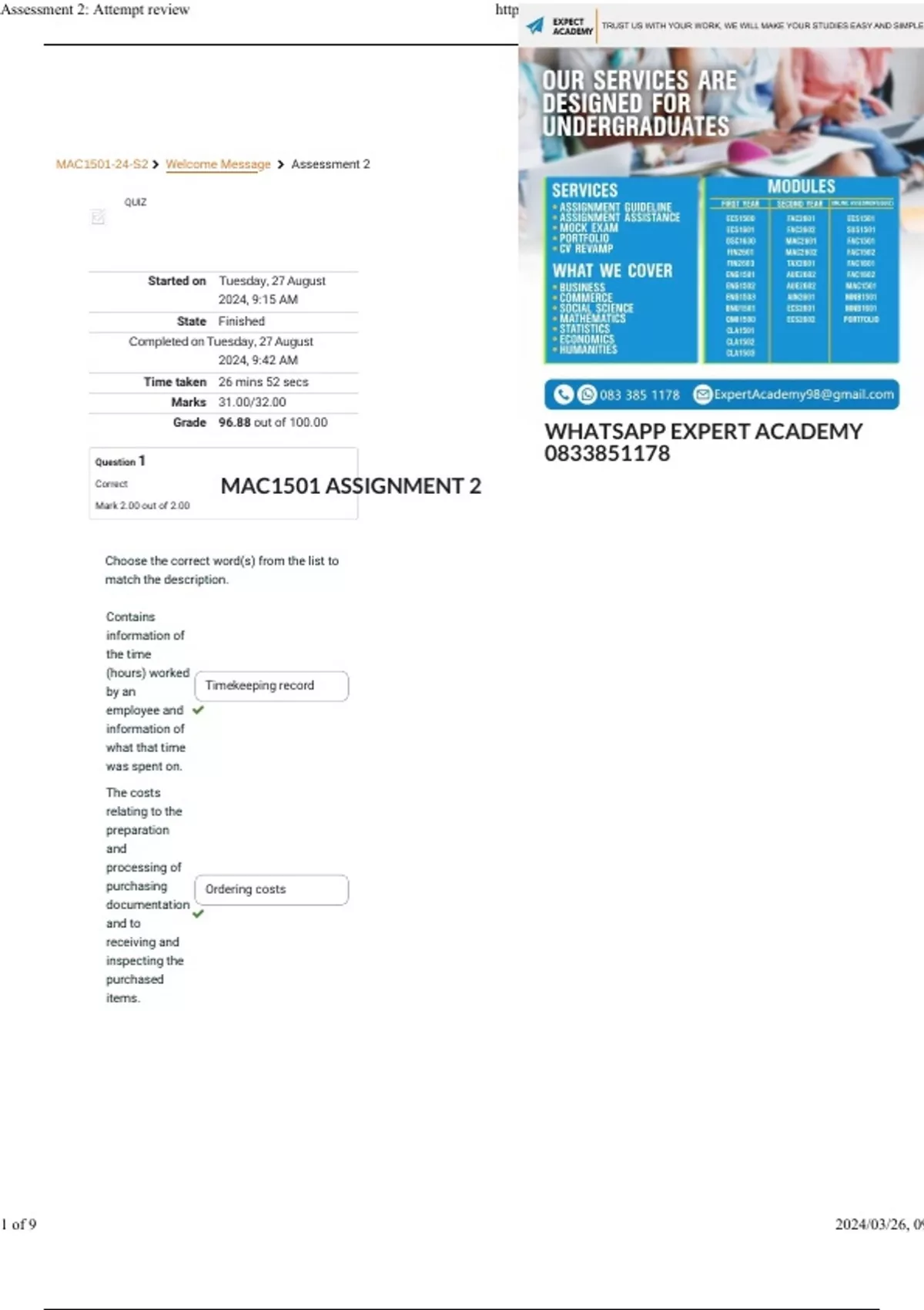 ,Assessment 2: Attempt review https://mymodules.dtls.unisa.ac.za/mod/quiz/review.php?attempt=164