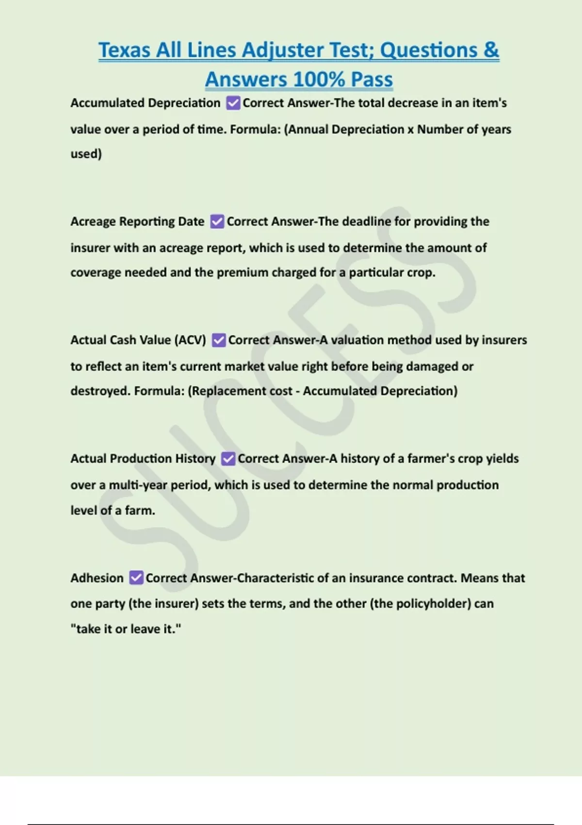 , Texas All Lines Adjuster Test; Questions &