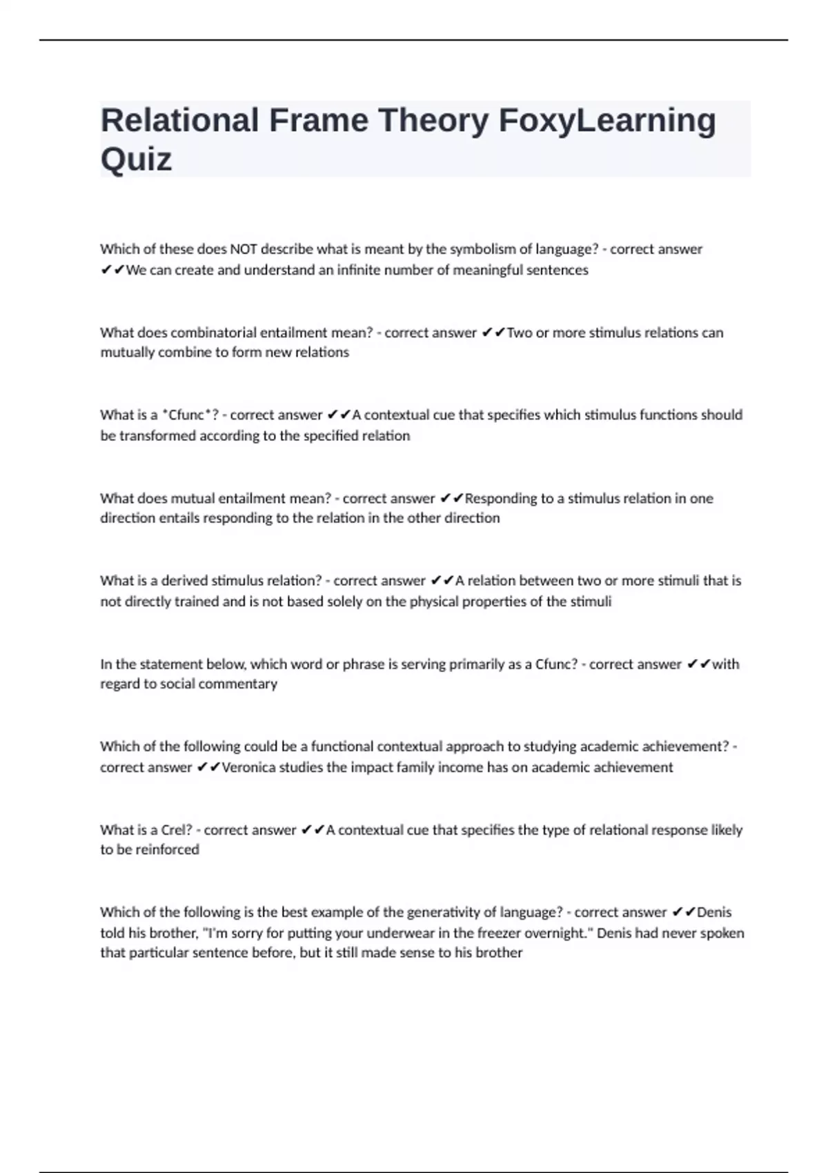 Relational Frame Theory FoxyLearning Quiz with verified solutions