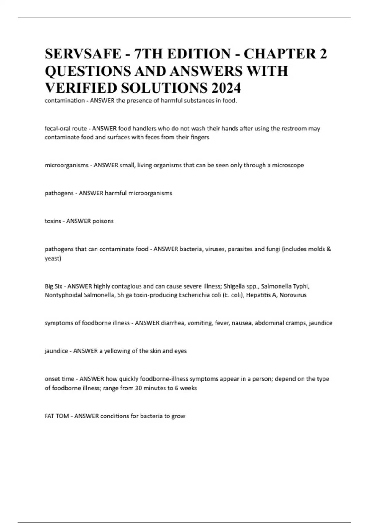 symptoms of foodborne illness - ANSWER diarrhea, vomiting, fever, nausea, abdominal cramps, jaundice