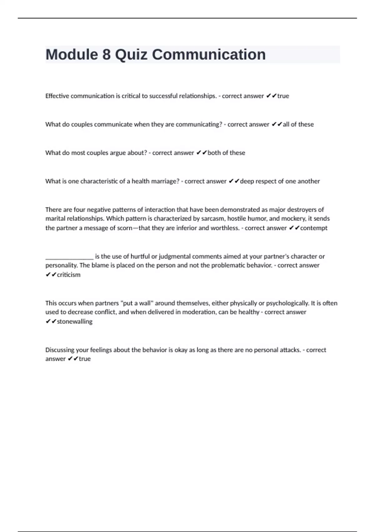 Effective communication is critical to successful relationships. - correct answer ✔✔true