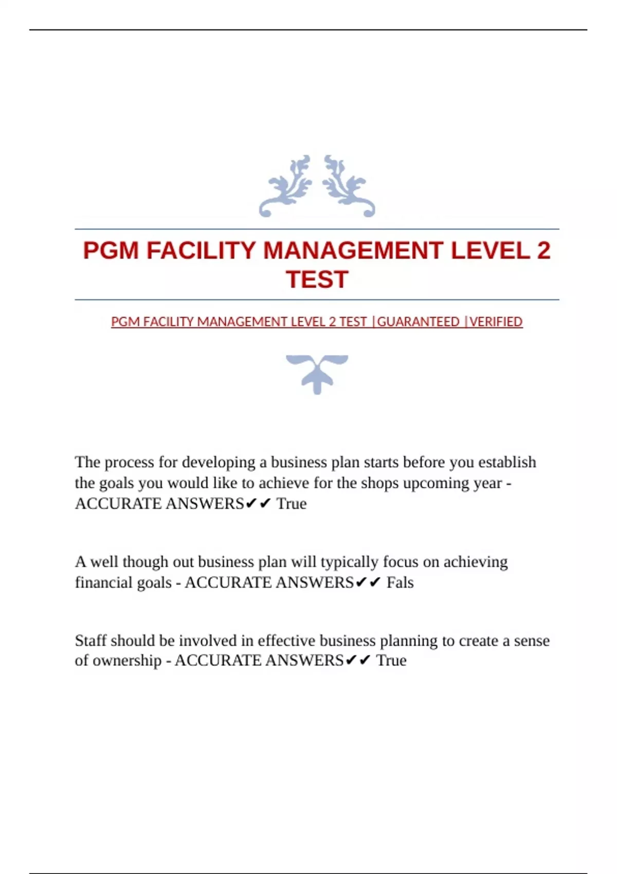 PGM FACILITY MANAGEMENT LEVEL 2 TEST |GUARANTEED |VERIFIED