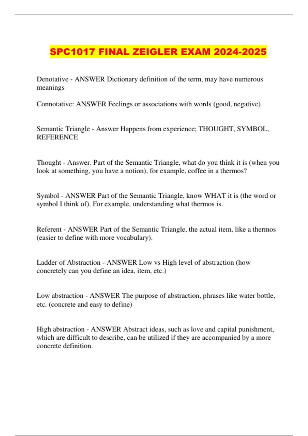 SPC1017 FINAL ZEIGLER EXAM 2024-2025