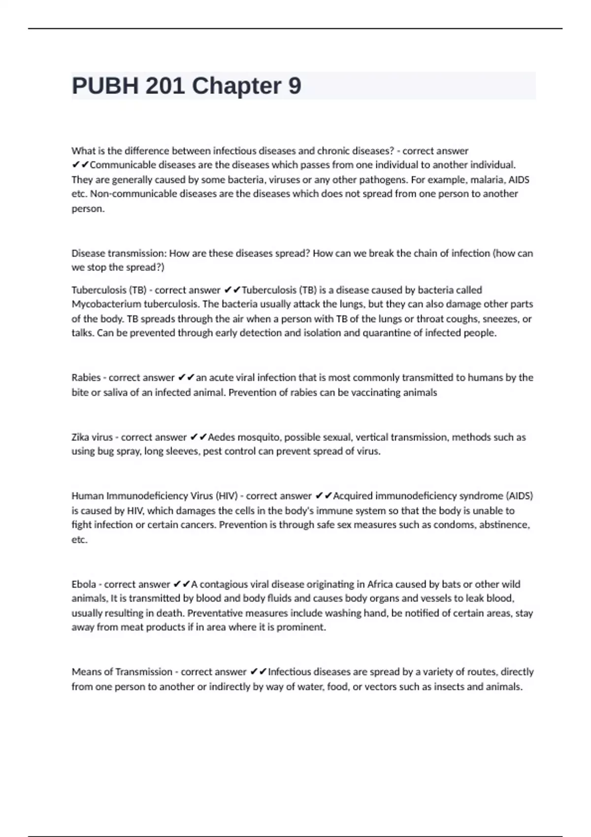 Means of Transmission - correct answer ✔✔Infectious diseases are spread by a variety of routes, directly