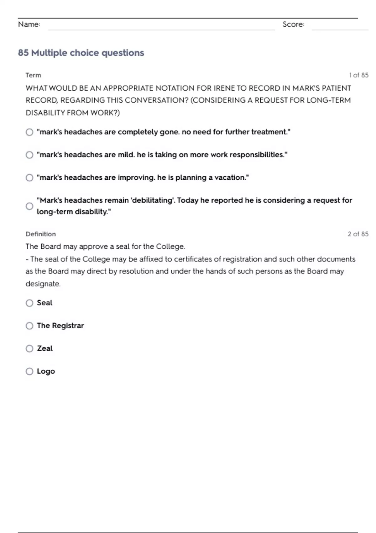 WHAT WOULD BE AN APPROPRIATE NOTATION FOR IRENE TO RECORD IN MARK'S PATIENT