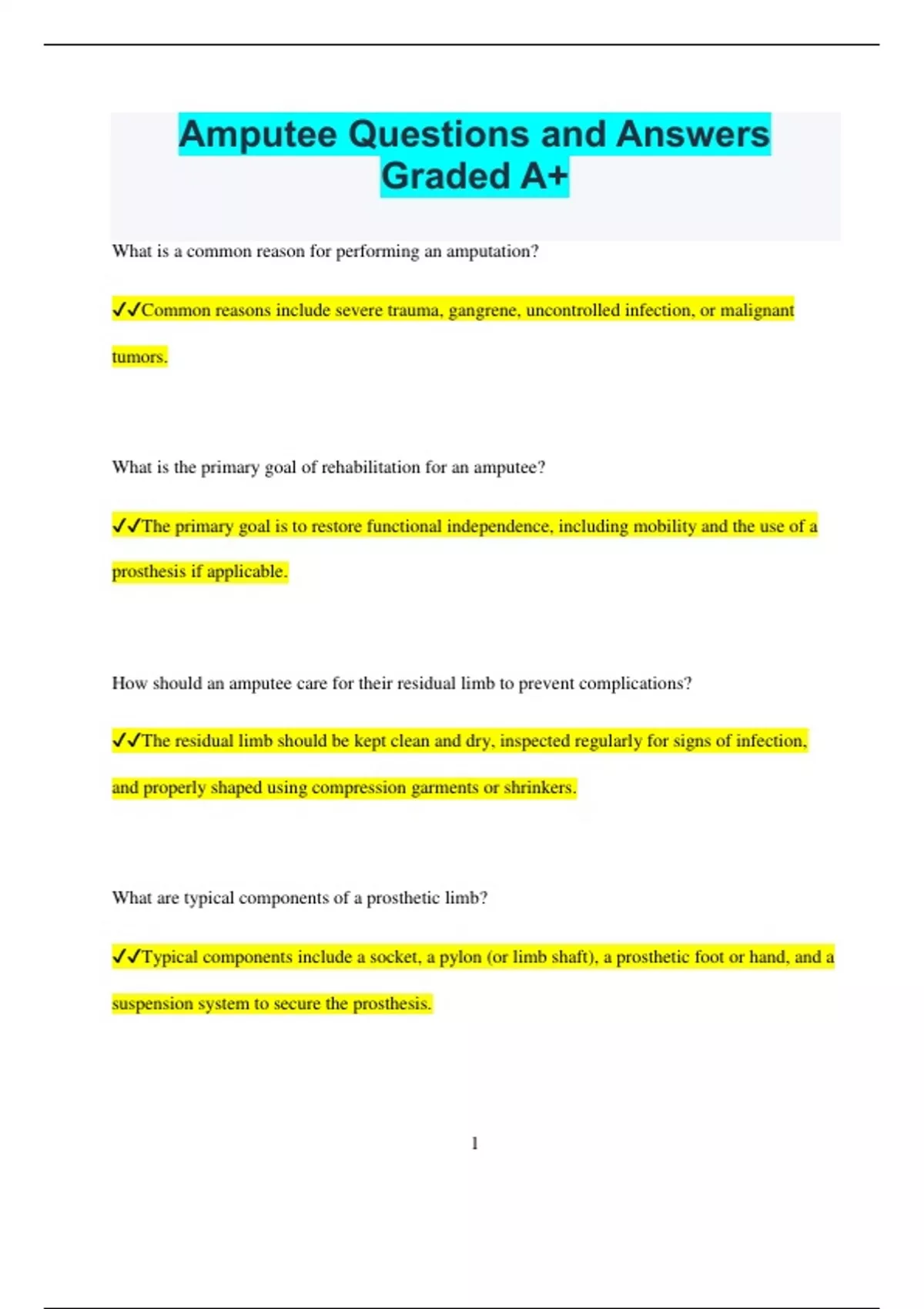 ✔✔The residual limb should be kept clean and dry, inspected regularly for signs of infection,