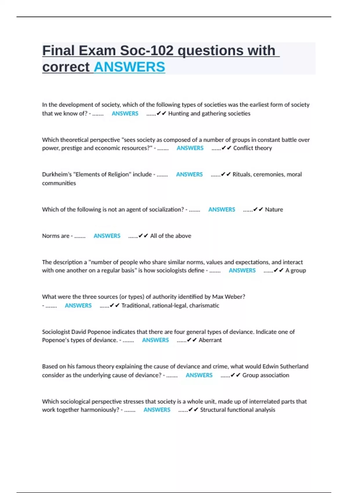 correct ANSWERS