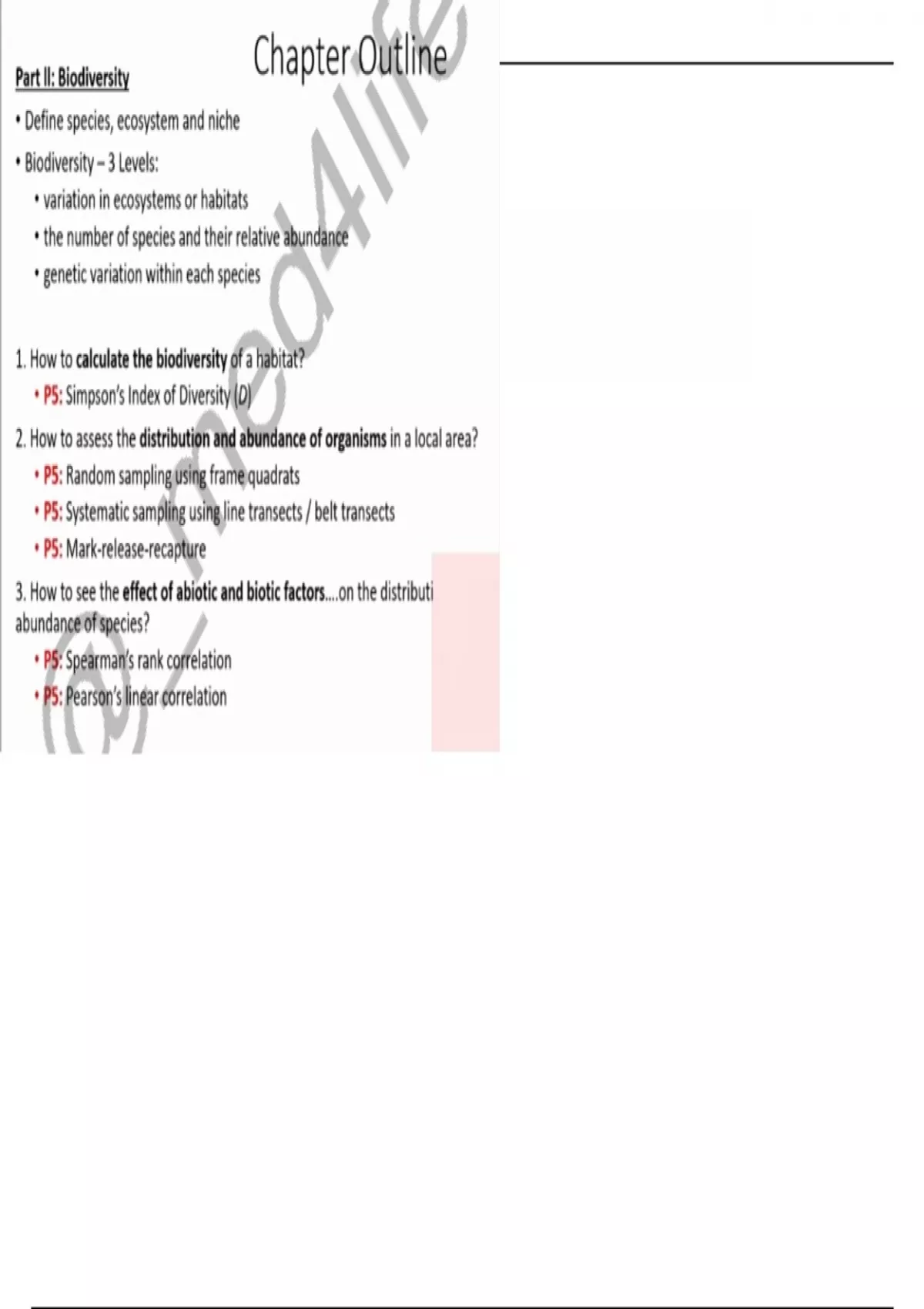 CAIE A-LEVEL BIOLOFY - CHAPTER 17; BIODIVERSITY AND CLASSIFICATION PART 2 NOTES Provides all the necessary information you need to know for paper 4,5