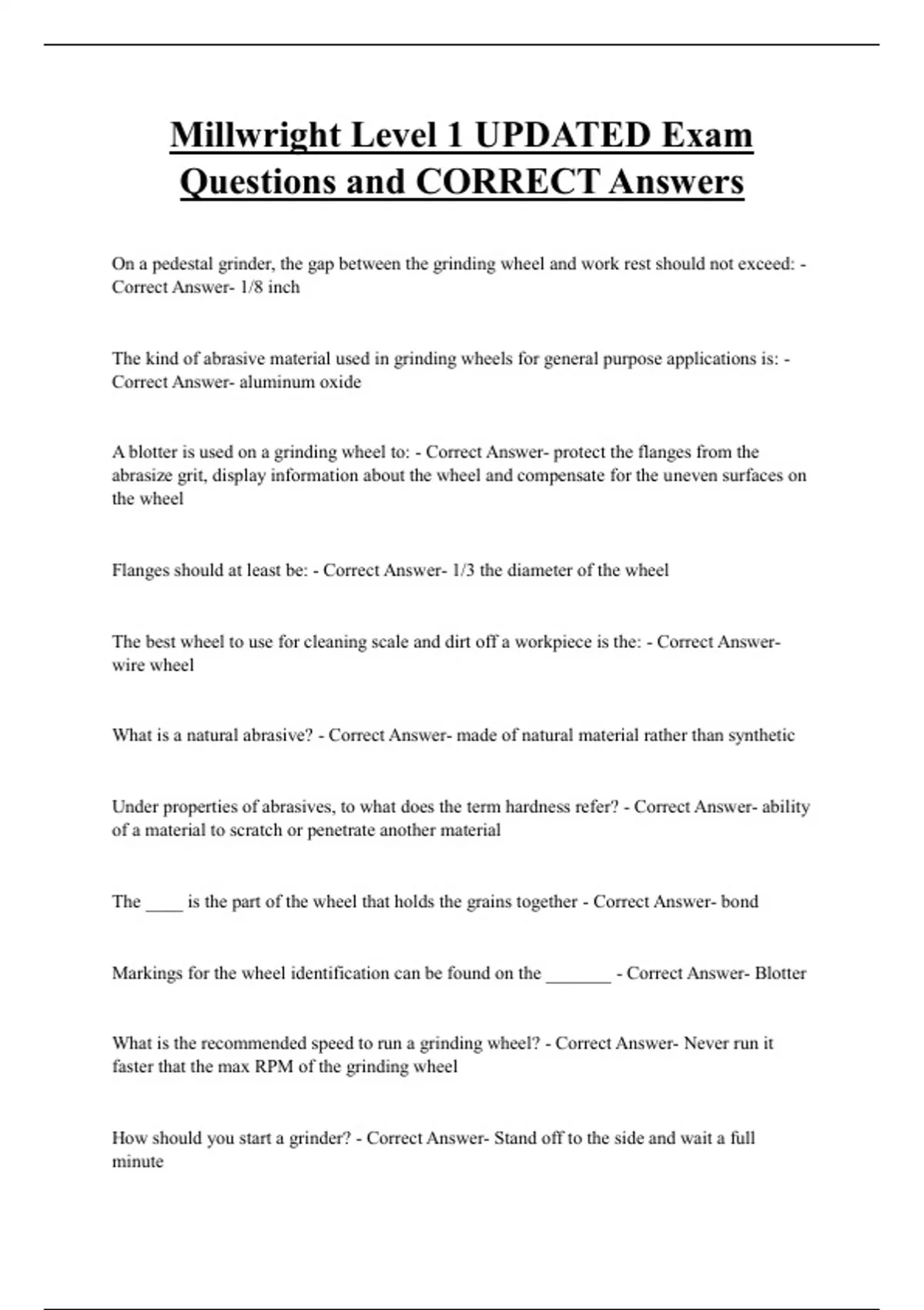 How should you start a grinder? - Correct Answer- Stand off to the side and wait a full