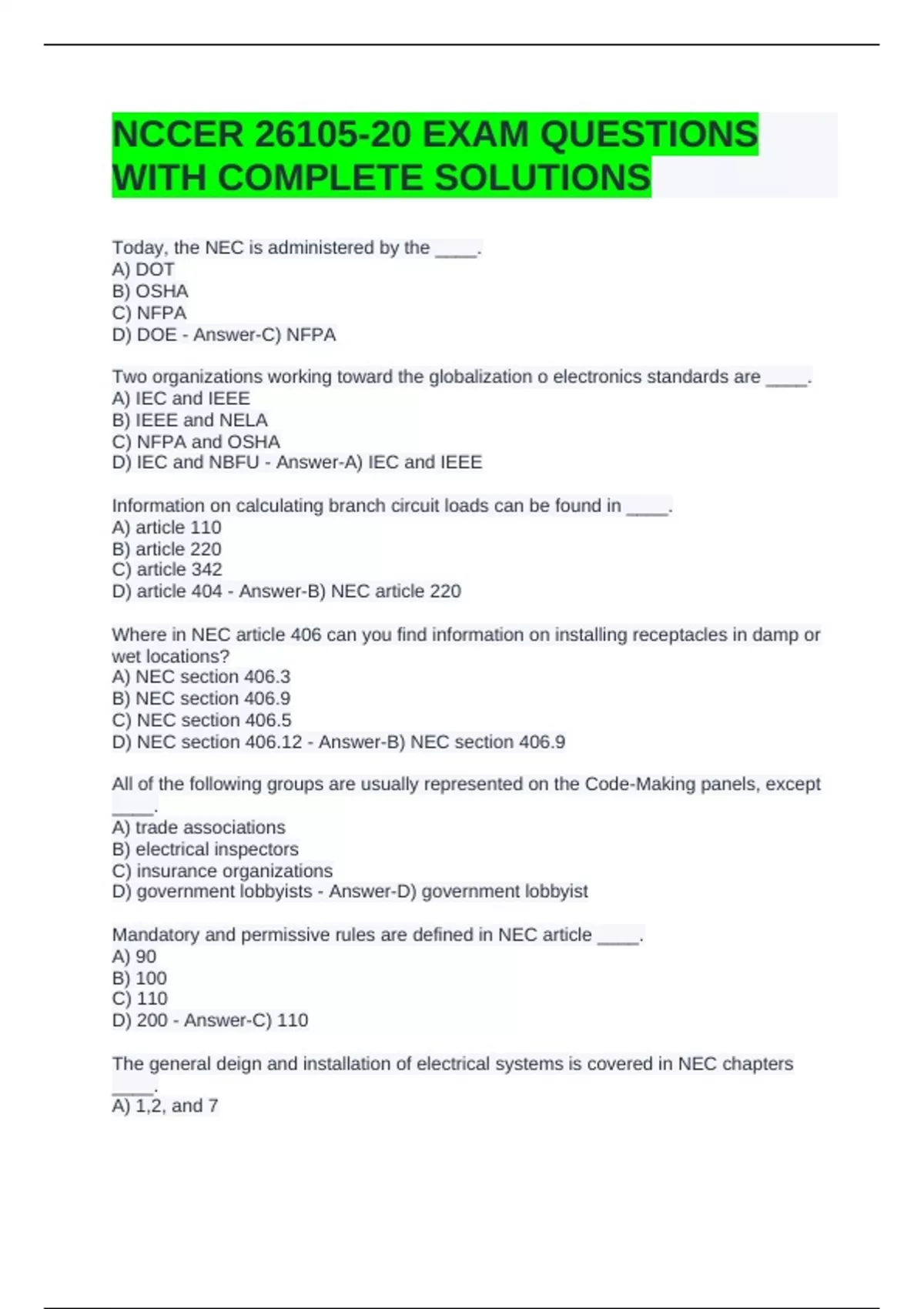 NCCER 26105-20 EXAM QUESTIONS WITH COMPLETE SOLUTIONS