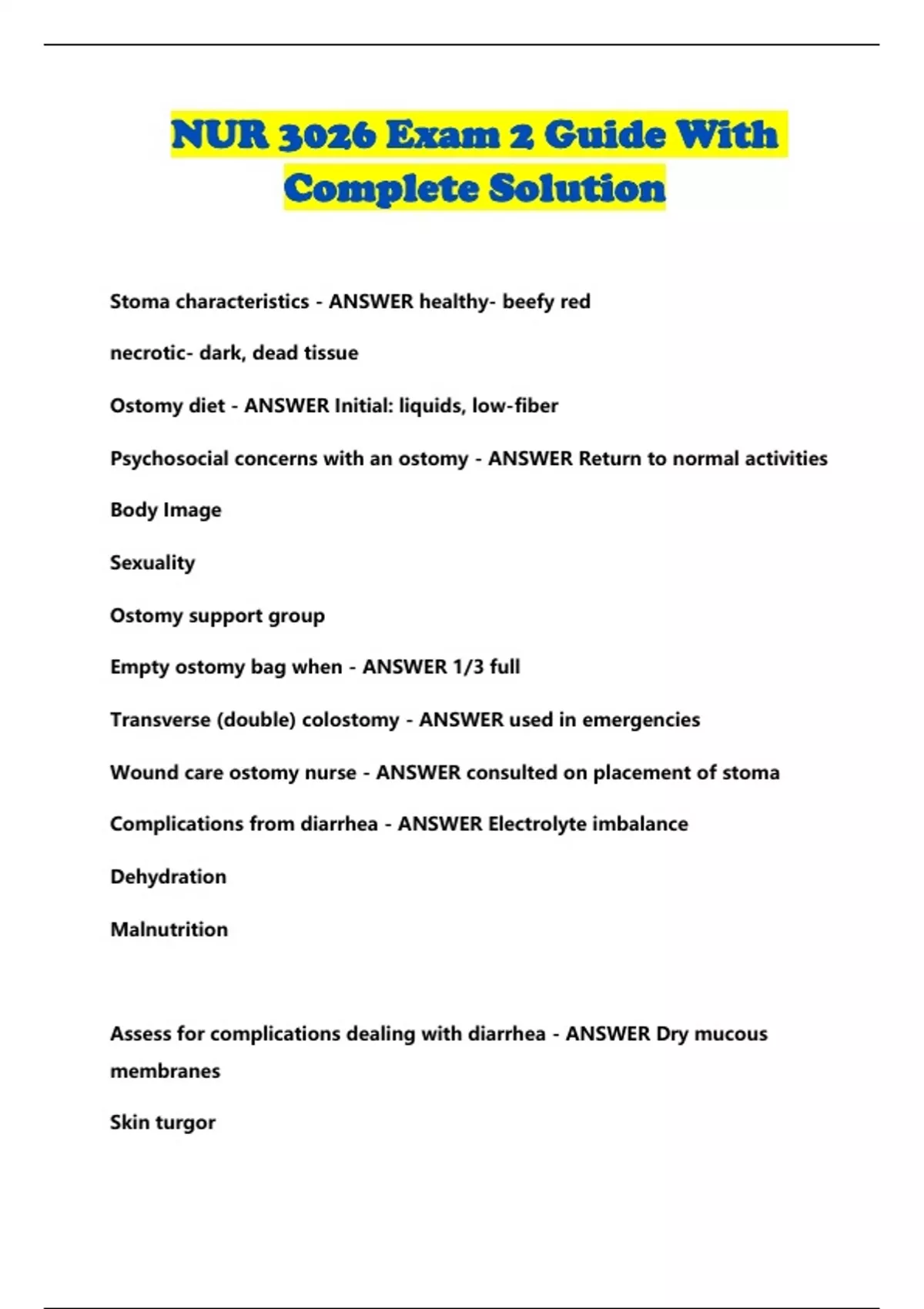 NUR 3026 Exam 2 Guide With Complete Solution...