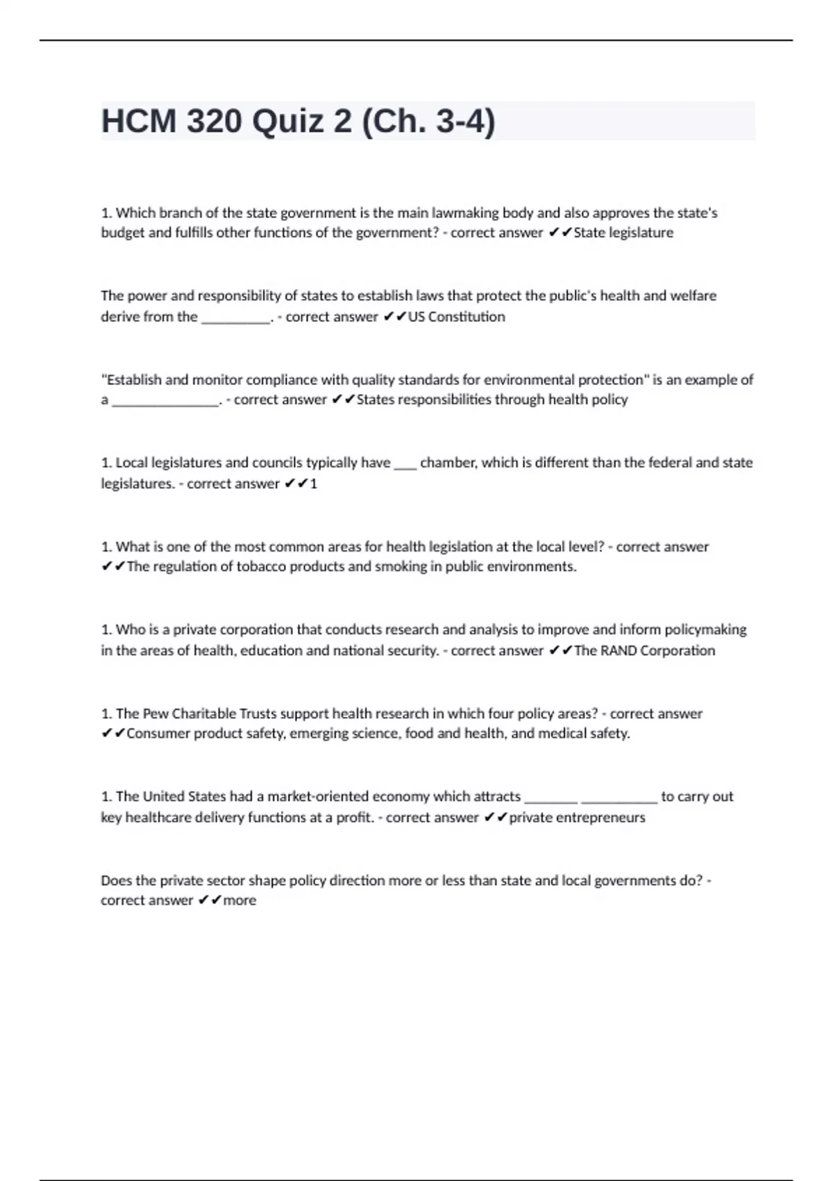 legislatures. - correct answer ✔✔1