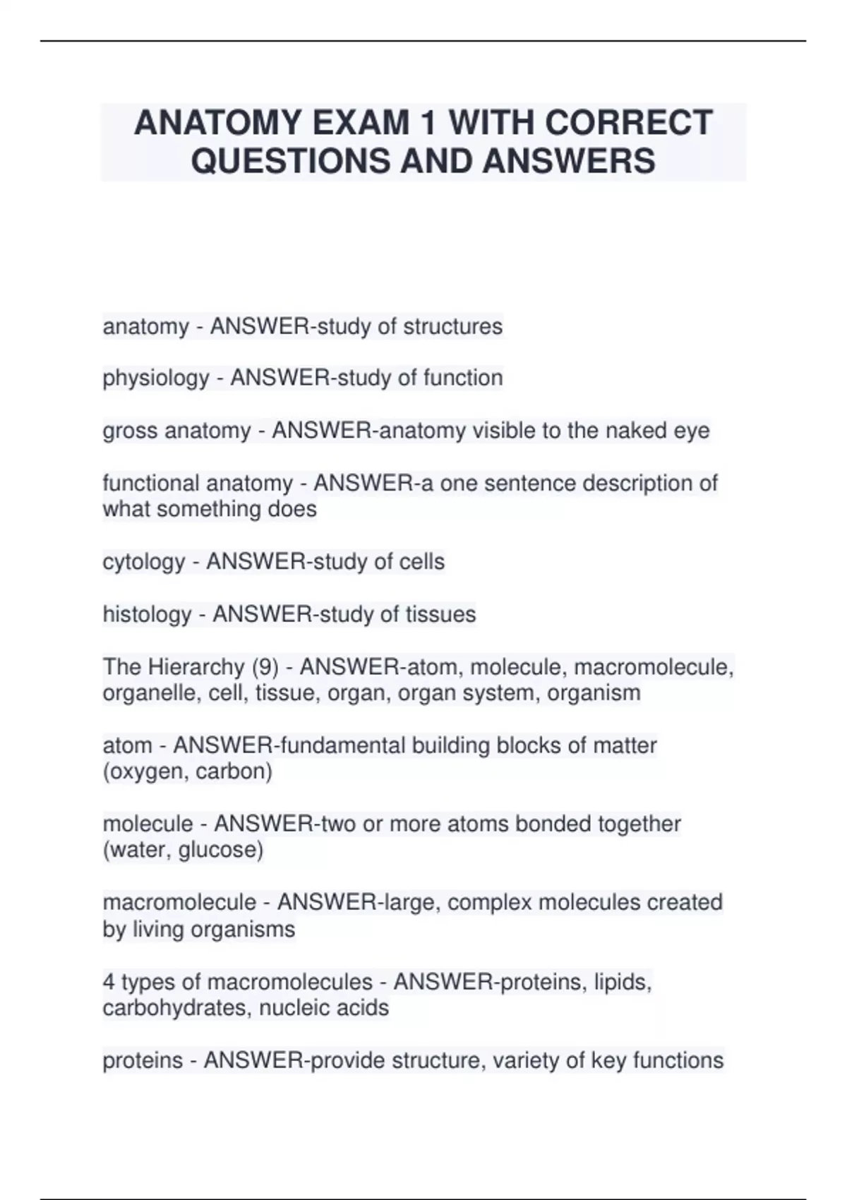 The Hierarchy (9) - ANSWER-atom, molecule, macromolecule,