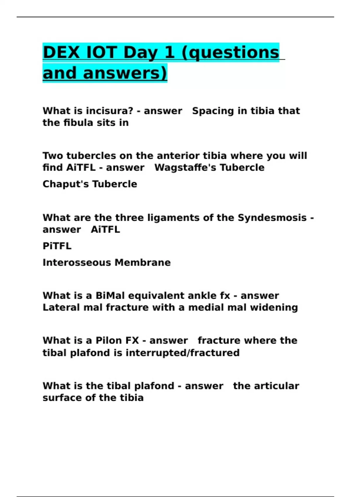 What is a BiMal equivalent ankle fx - answer