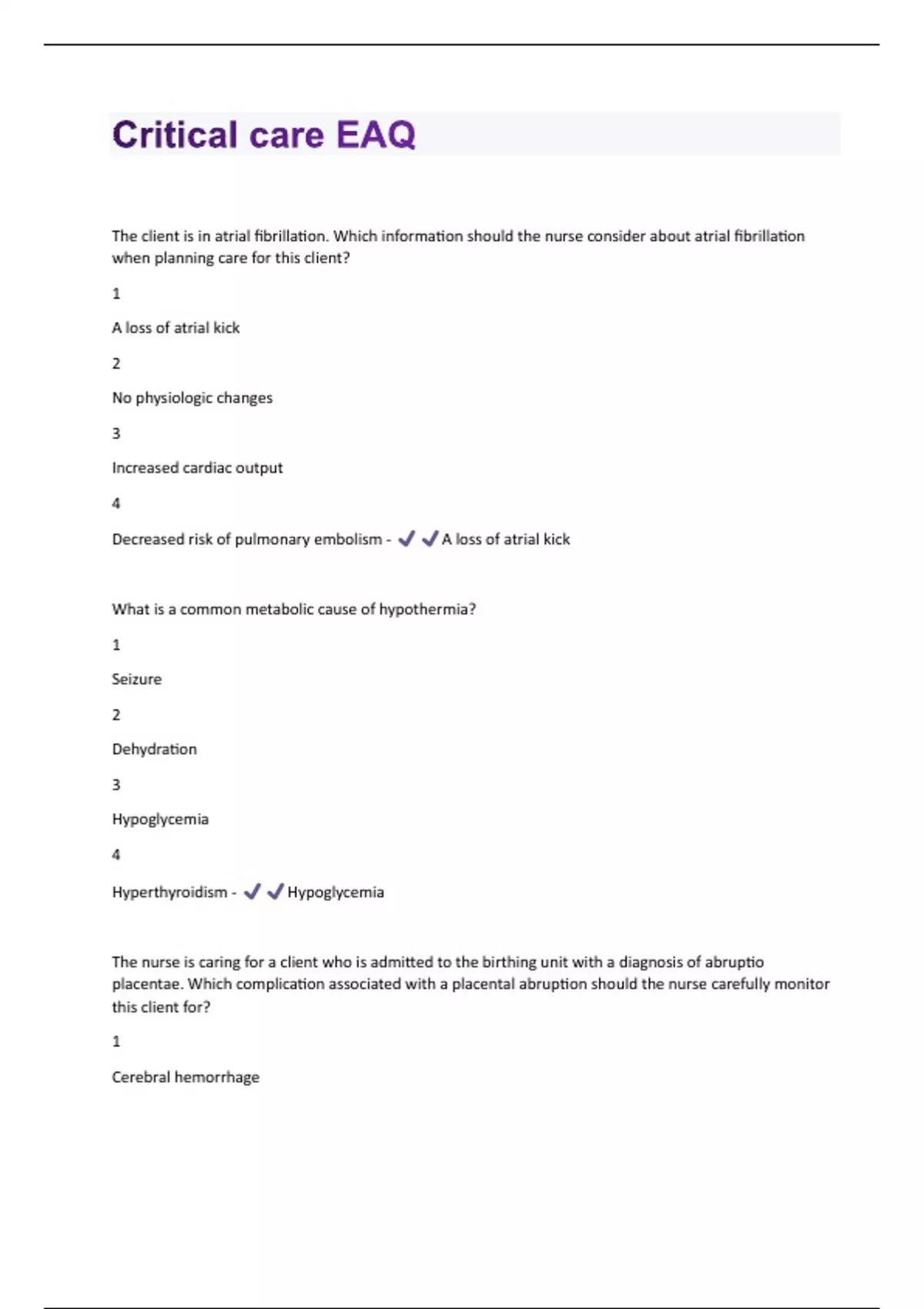placentae. Which complication associated with a placental abruption should the nurse carefully monitor