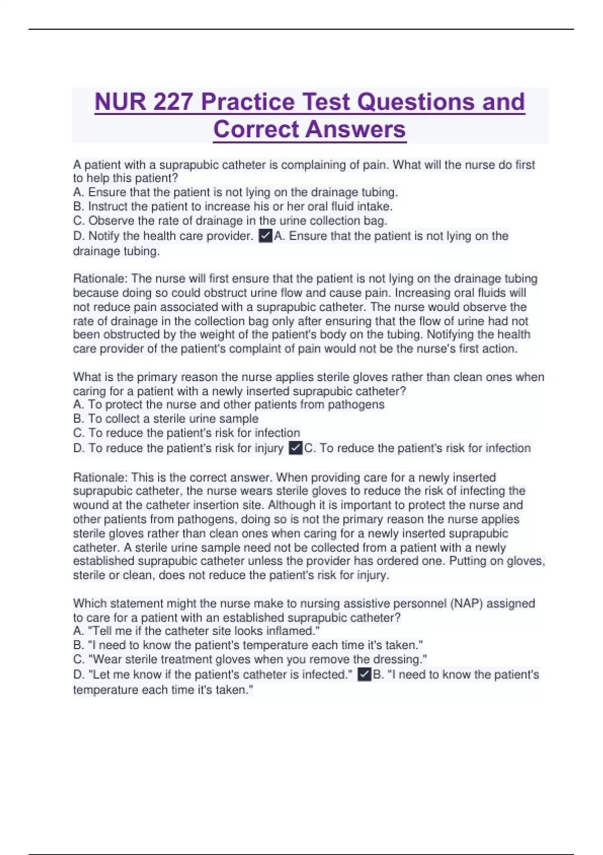 suprapubic catheter. Patient assessment cannot be delegated to NAP. In addition, the
