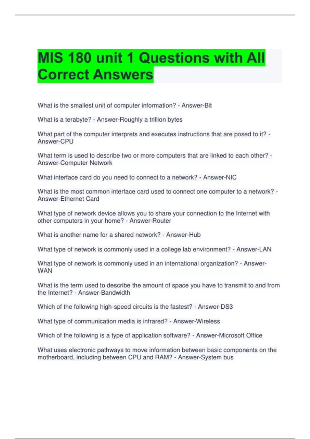 Answer-Computer Network