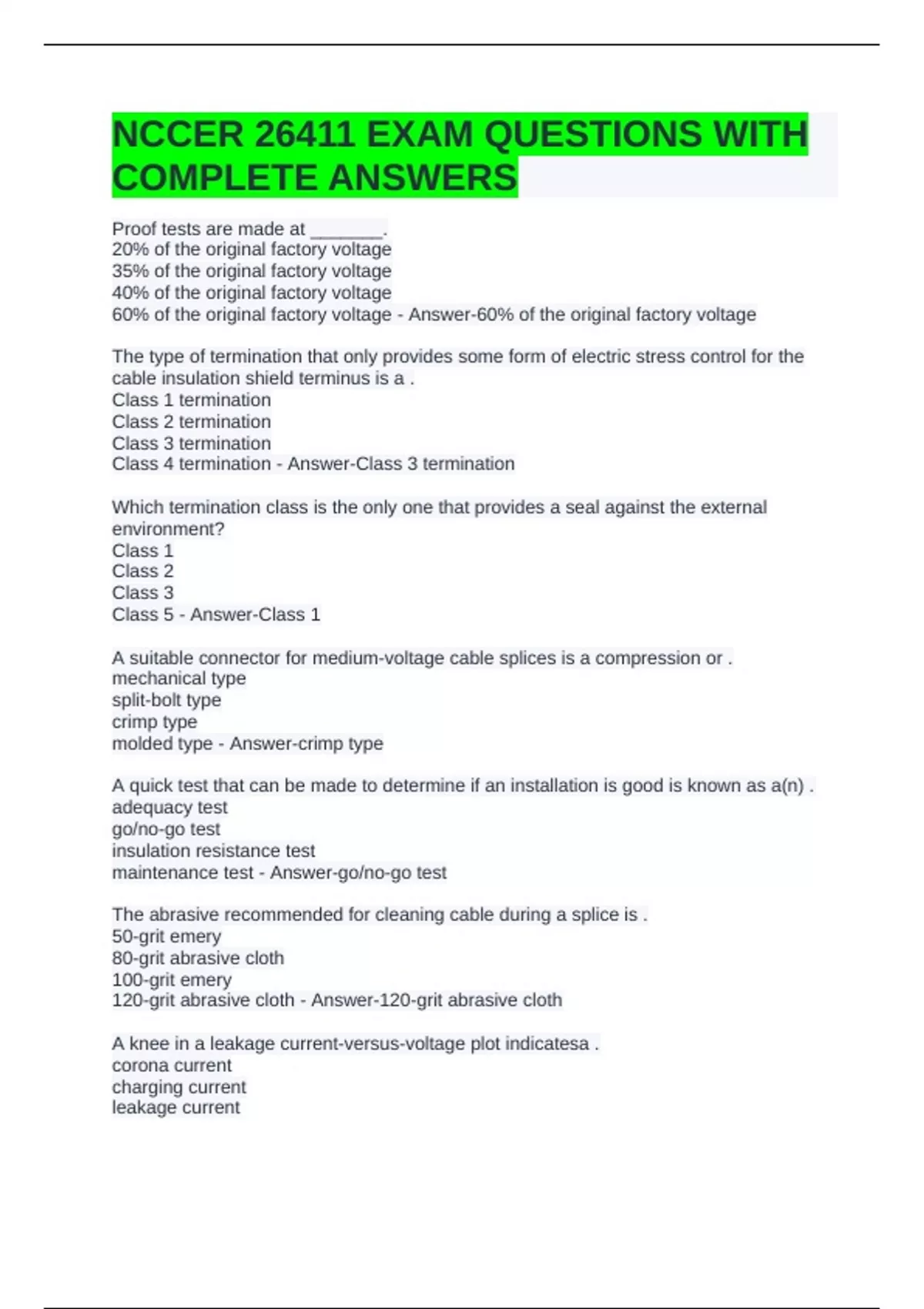 NCCER 26411 EXAM QUESTIONS WITH COMPLETE ANSWERS