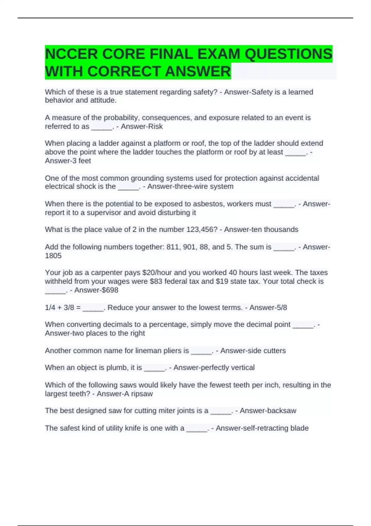 The safest kind of utility knife is one with a _____. - Answer-self-retracting blade